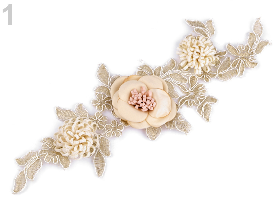 Použití: Vsadka vynikne na společenských šatech, halenkách apod. Můžete s ní dozdobit také tašky a bytový textil.