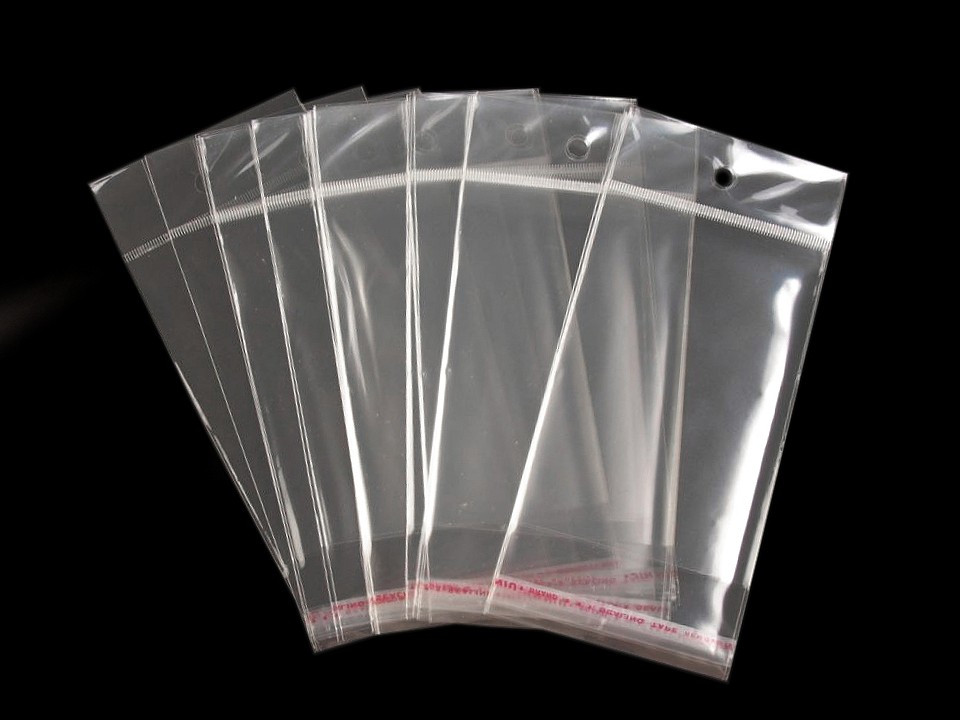 Lesklé sáčky o velikosti 8 x 12 cm jsou vhodné na zabalení šperků nebo menších výrobků. Z jedné strany jsou sáčky opatřeny lepicí lištou, díky které je snadno zalepíte i rozlepíte, a z druhé strany závěsem, abyste je mohli snadno zavěsit na viditelné místo.