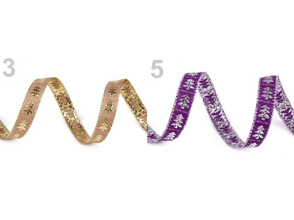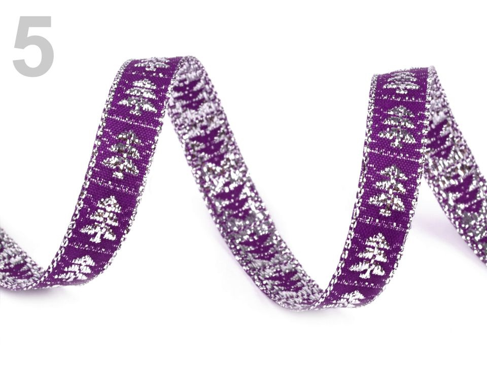 Stuha stromeček s lurexem šíře 10 mm - 5 fialová stříbrná
