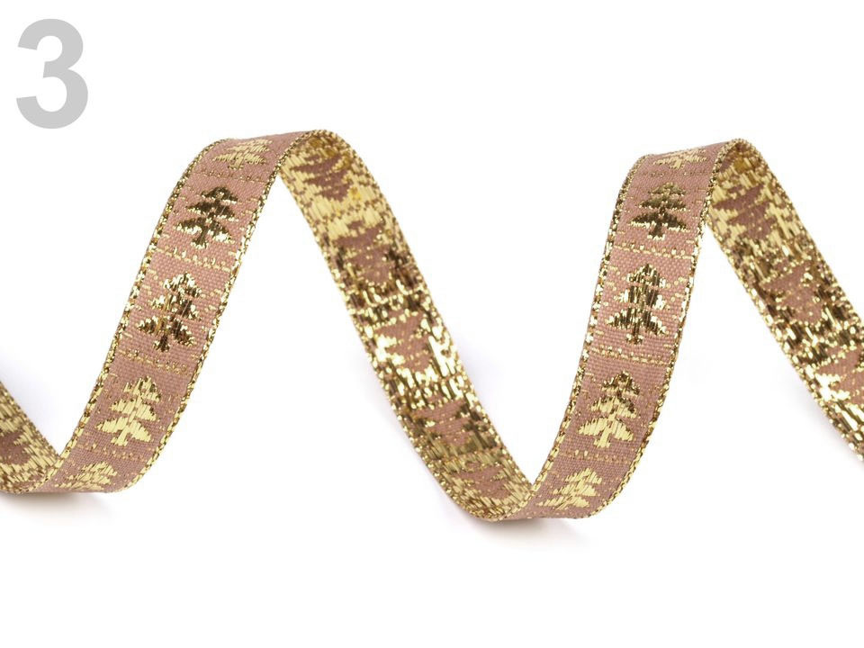Stuha stromeček s lurexem šíře 10 mm - 3 béžová zlatá
