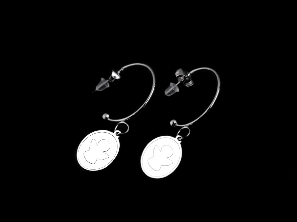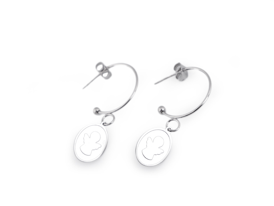 Kruhové náušnice s medailonkem andílka jsou vyrobené z kvalitní nerezové oceli.