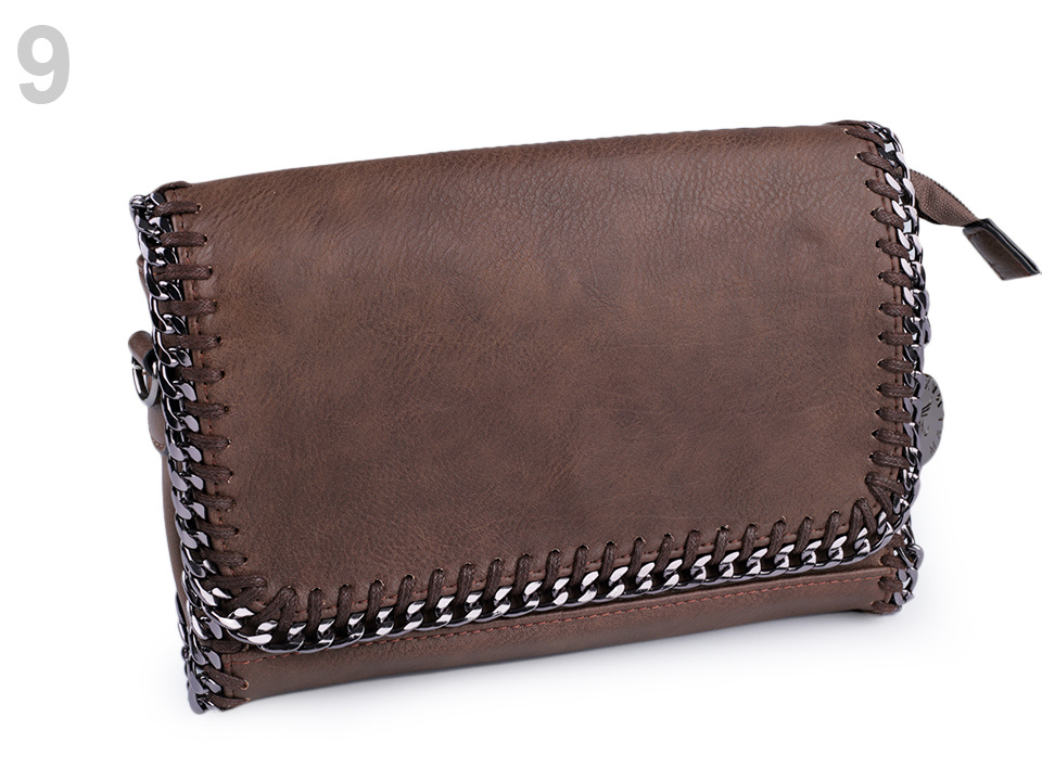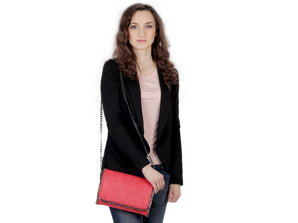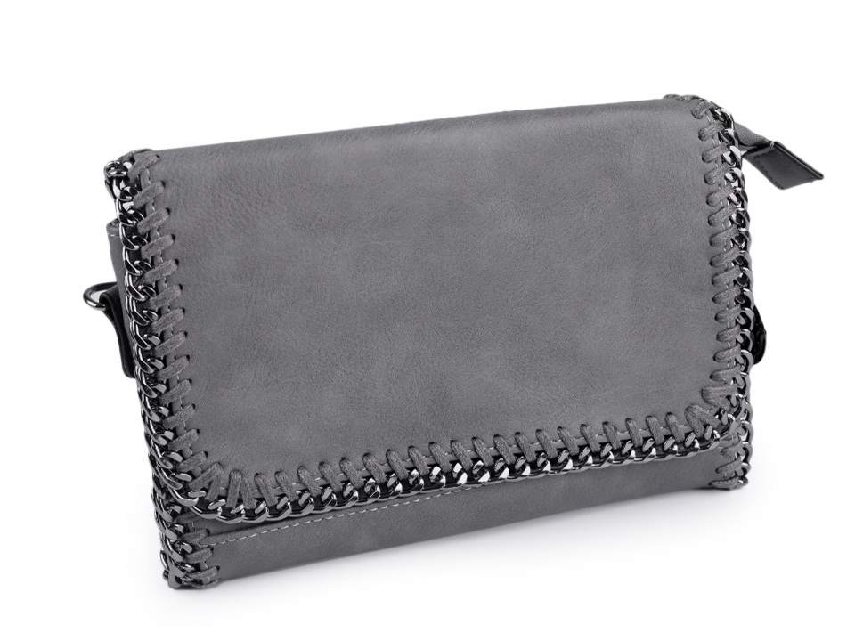 Malou kabelku z eko kůže lemuje kovový řetízek. Uvnitř kabelky najdete dvě postranní přihrádky a kapsičku na zip. Další kapsa na zip je na vnější zadní straně. Klopa kabelky se zapíná na magnet. Součástí kabelky je odnímatelný řetízkový popruh, umožňující pohodlné nošení kabelky na rameni. Kabelku lze nosit také v ruce jako psaníčko.