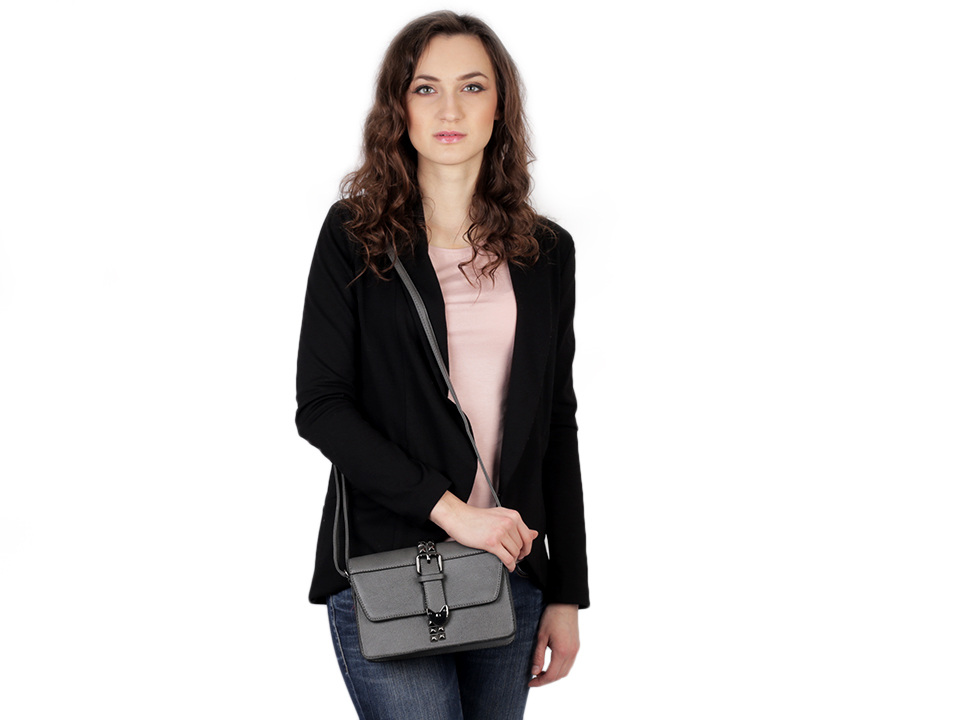 Malá elegantní kabelka s ozdobnou přezkou vyniká zajímavým designem a kvalitním zpracováním.