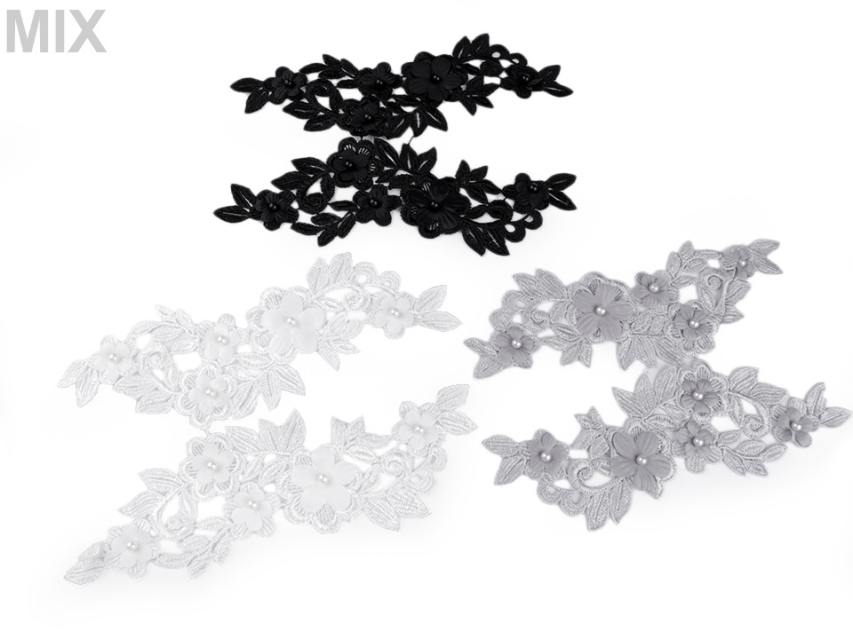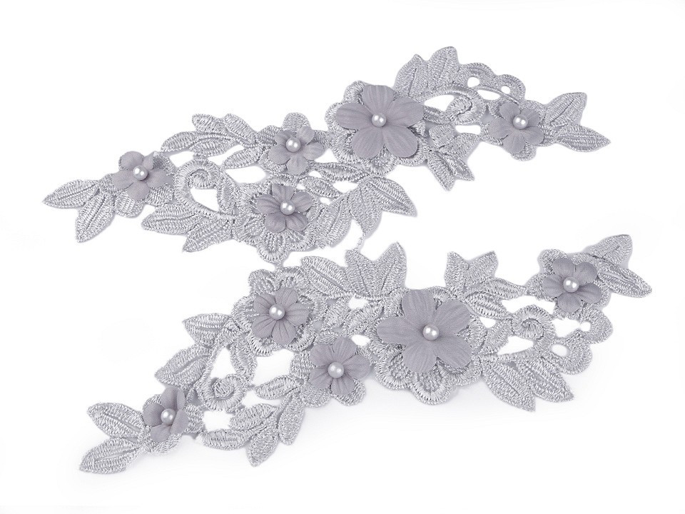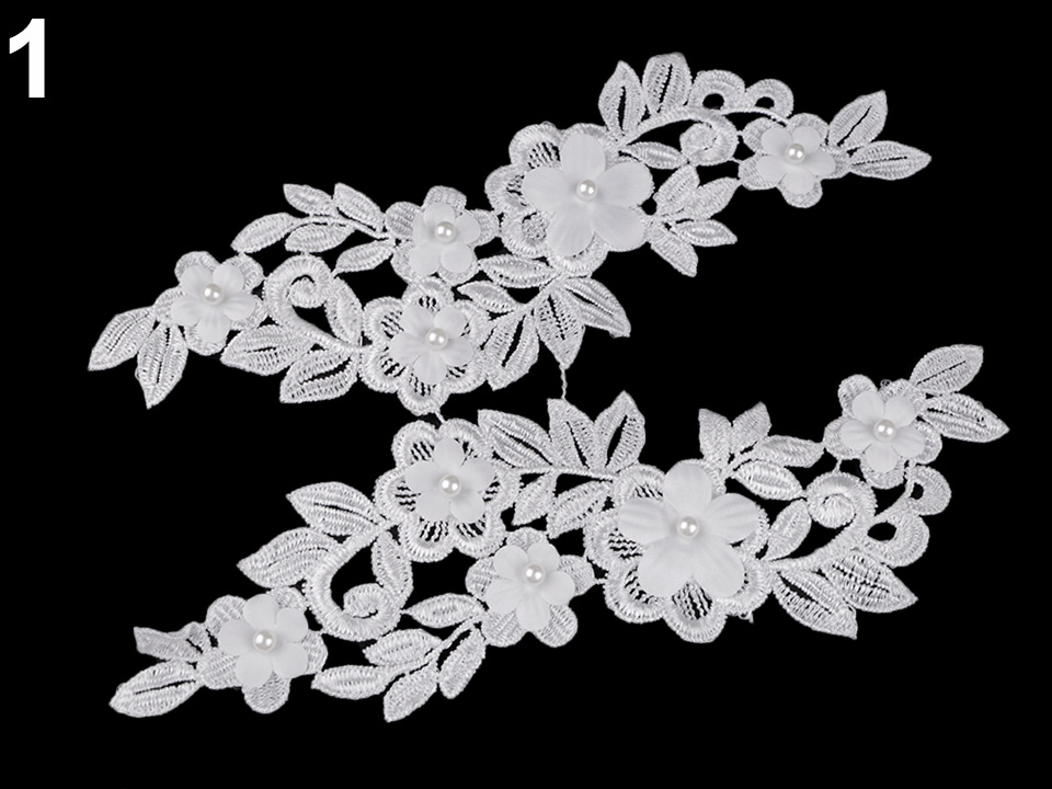 Vsadka s květy se skládá ze 2 dílů - pravý a levý díl (nutno od sebe odstřihnout). Květy zdobí uprostřed perly.