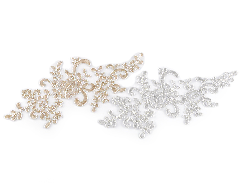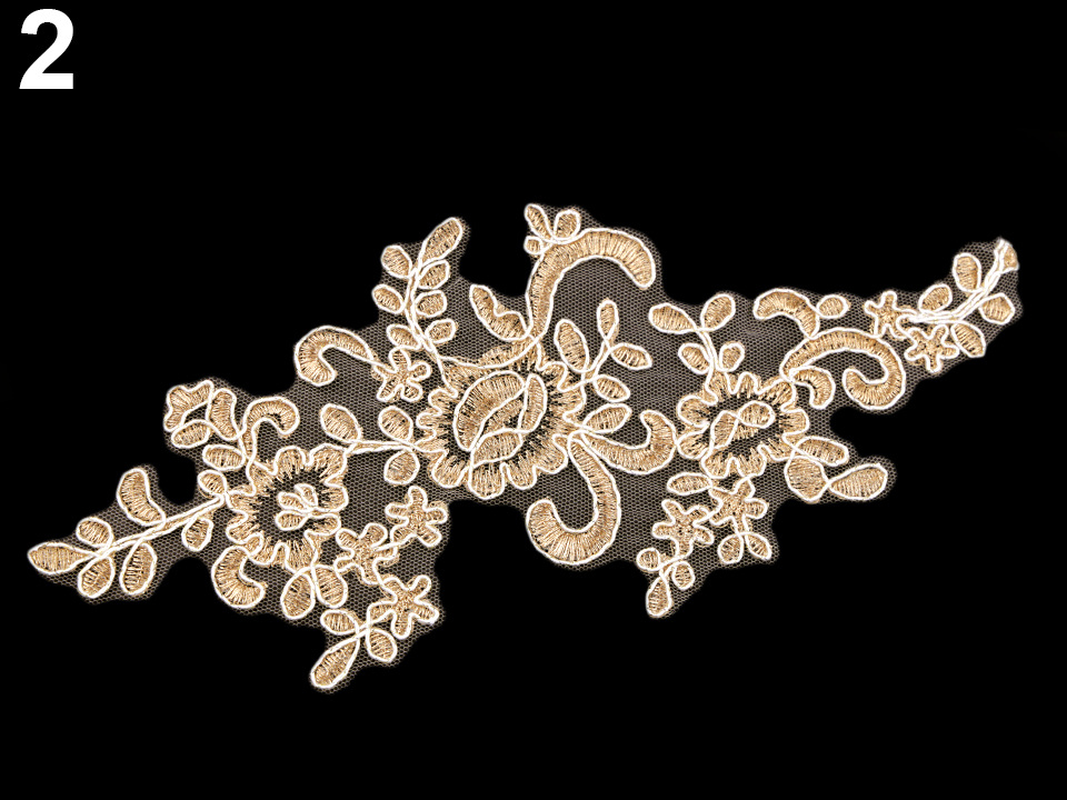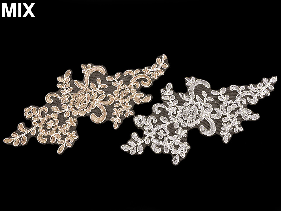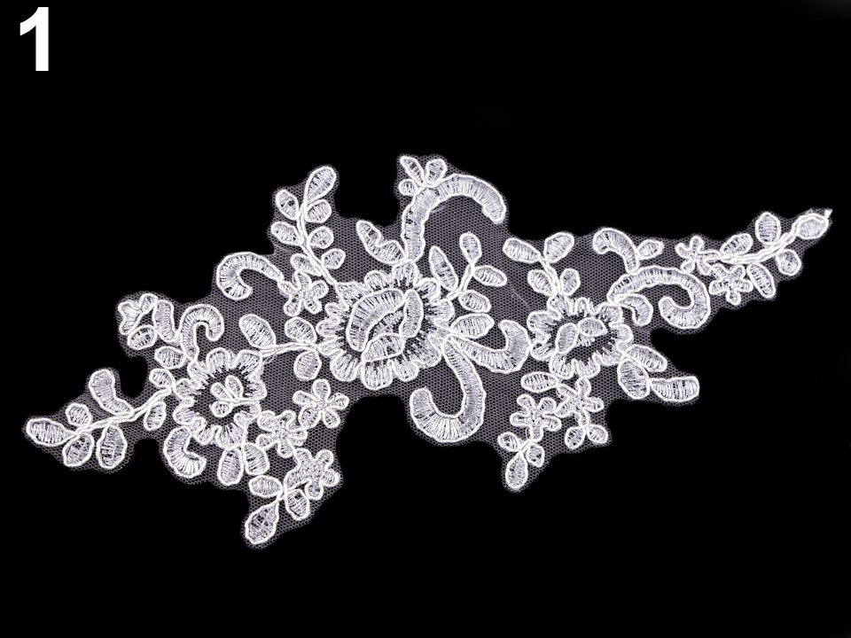 Použití: Vsadku můžete použít v jejím jednoduchém deisgnu, nebo si ji můžete dozdobit textilními květy, perlami, našívacími kamínky apod. Vynikne na společenských šatech, halenkách i sukních.