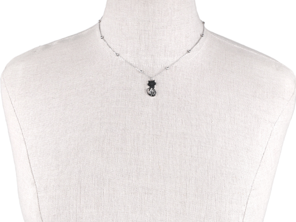 Jednoduchý elegantní náhrdelník s kočkou z kvalitní nerezové oceli s broušenými kamínky je vhodný pro dívky i ženy jakéhokoliv věku.