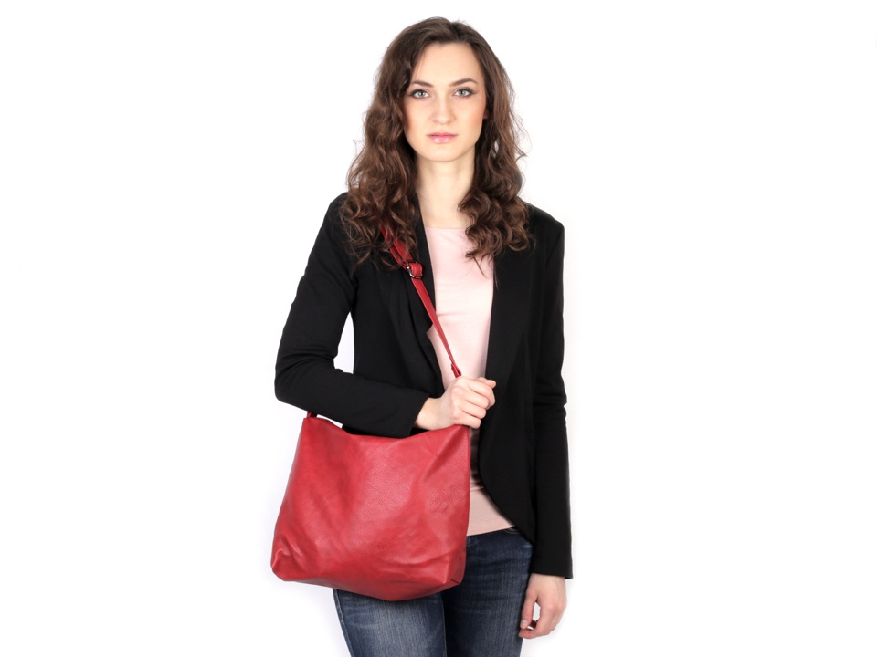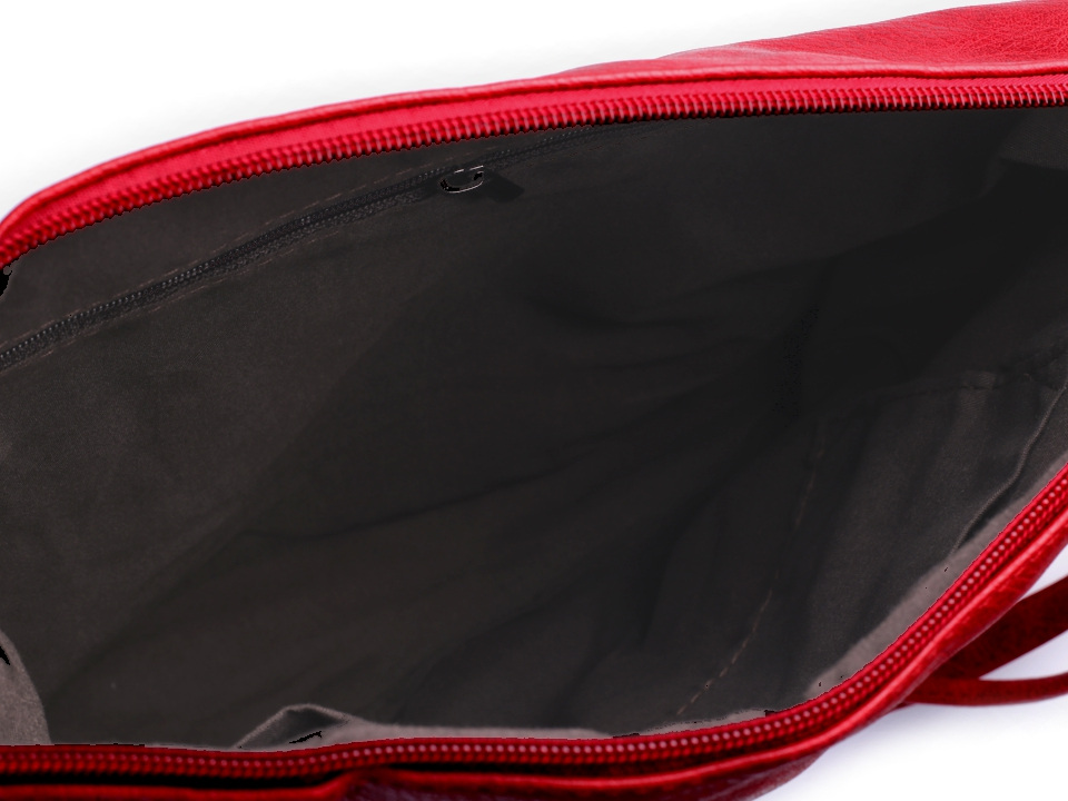 Velká kabelka má velké pevné dno. Uvnitř je jeden velký prostor. Na boční straně jsou umístěné řemínky na svázání.