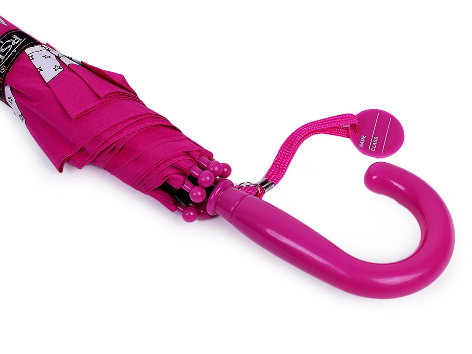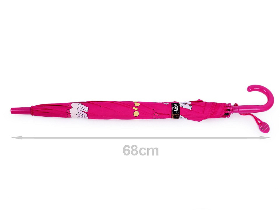 Konstrukce deštníku je kovová, odolná vůči větru. Deštník má plastovou západku - velmi lehce se otevírá i zavírá. Kovová tyč je zakončena plastovou rukojetí, která je velikostně přizpůsobená dětské ruce. Konstrukce deštníku je z kovového drátu a tvoří osm polí. Dráty jsou zakončené plastovými koncovkami - zmenšují riziko poranění.