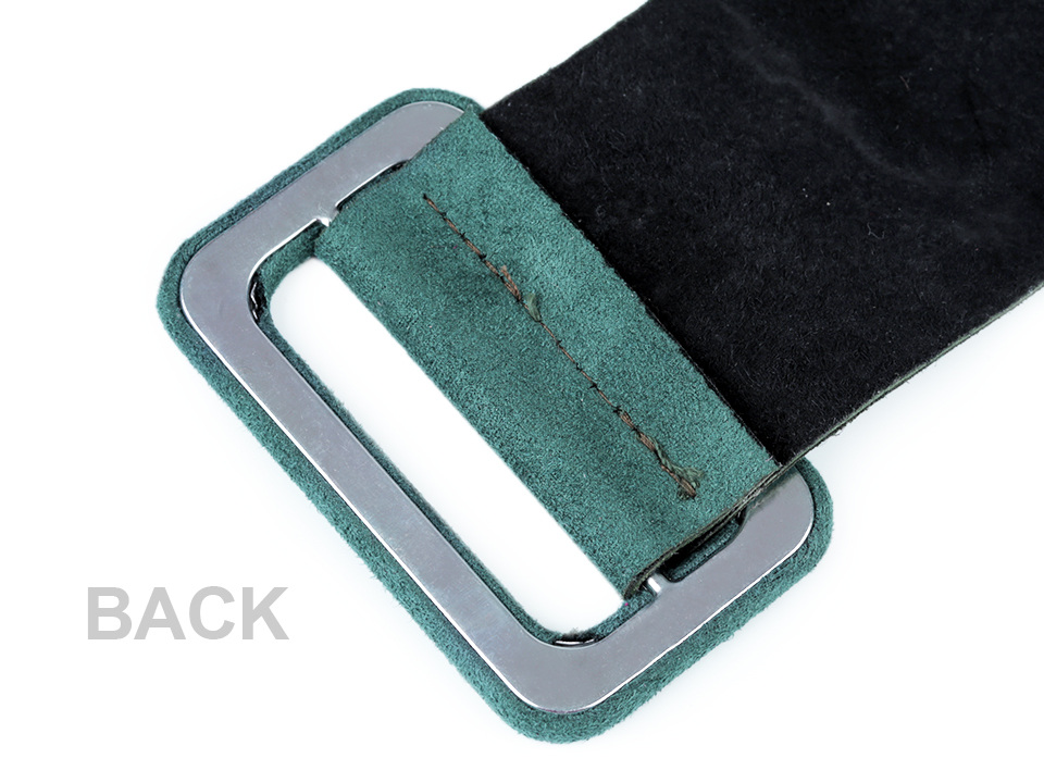 Je velice kvalitní, horní strana je semišová, dolní stranu má koženou. Spona je potažená textilem, spodní stranu má kovovou. Pásek je vhodný pro nošení k šatům, tunikám apod.