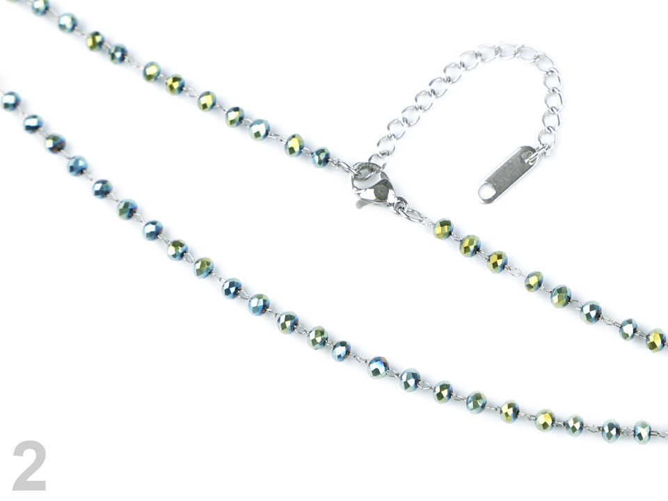 Jemný náhrdelník z broušených kamínků s AB efektem je vhodný ke slavnostním přiležitostem jako jsou plesy, večírky, party apod. Působí elegantním dojmem. Oslnivě se třpytí, díky tomu je náhrdelník velice poutavý.