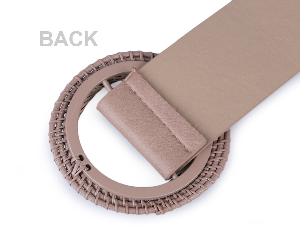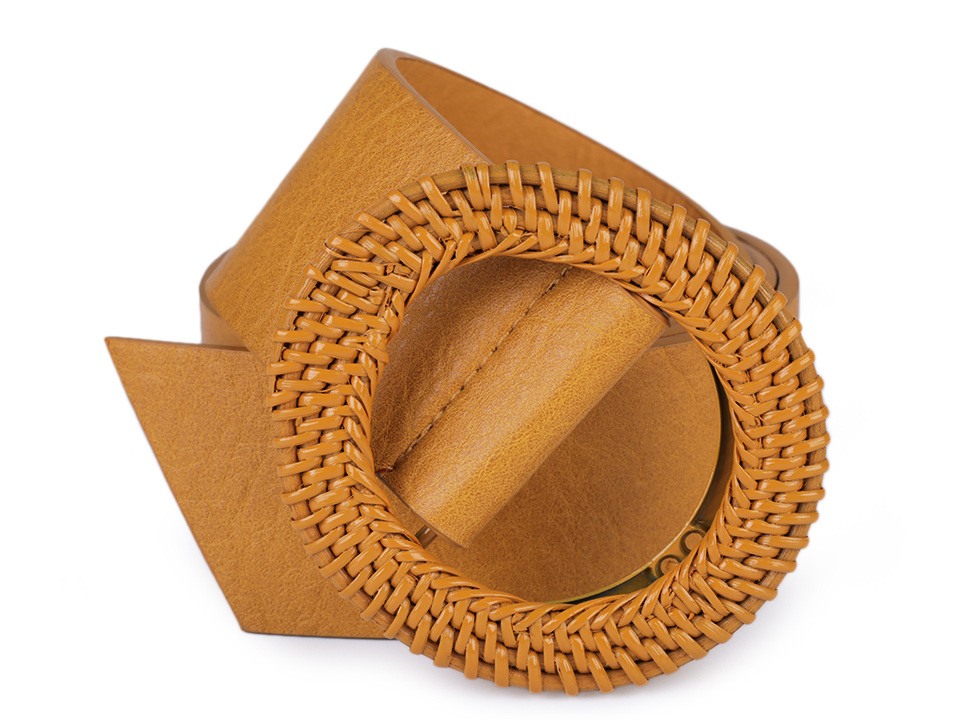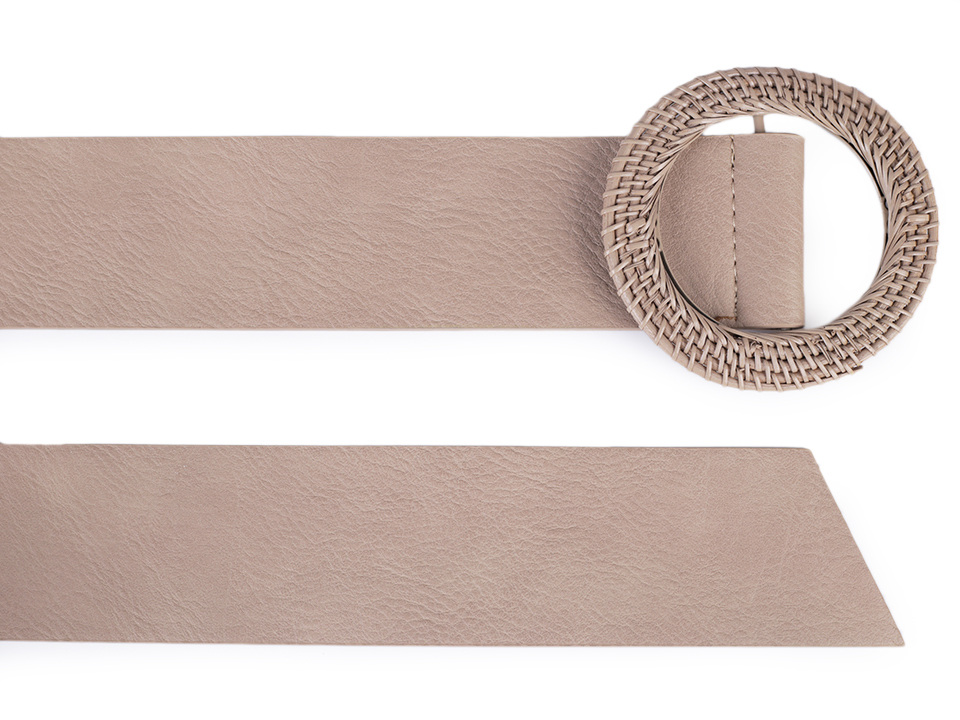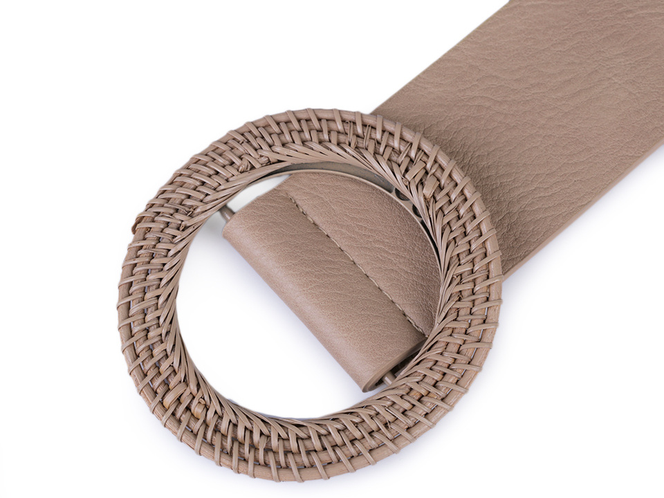 Široký dámský pásek je velice elegantní, nadchne ženy všech generací. Má kvalitní provedení zdařile imituje pravou kůži. Kulatá spona je proplétaná a vyrobená z přírodního materiálu. Pásek je vhodný pro nošení k šatům, tunikám, letním outfitům apod.