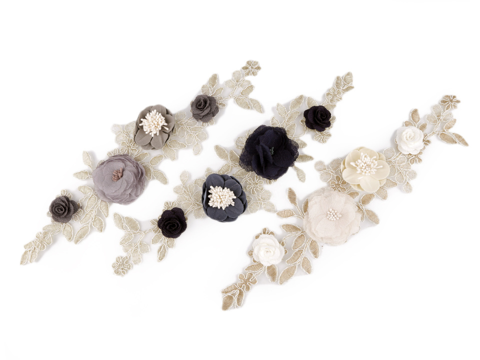 Použití: Vsadka vynikne na společenských šatech, halenkách, kabátcích apod. Můžete s ní dozdobit také tašky a bytový textil.