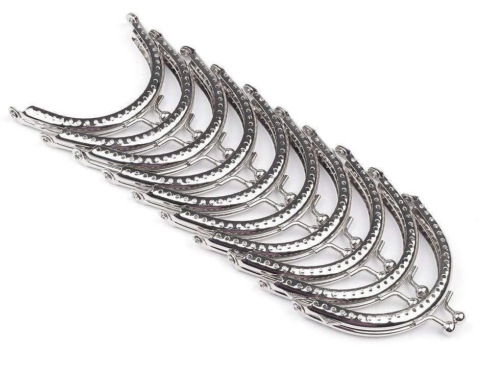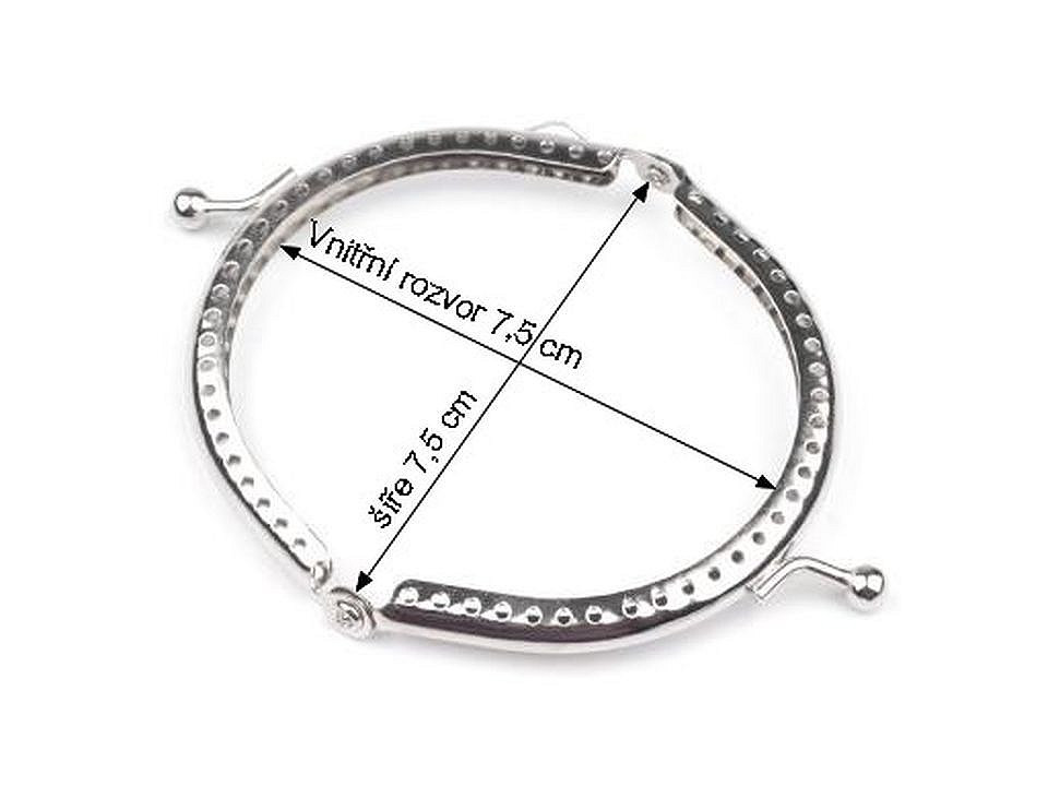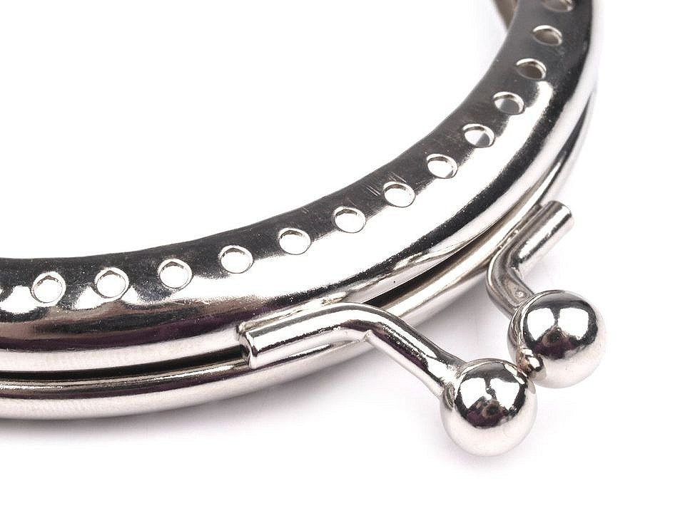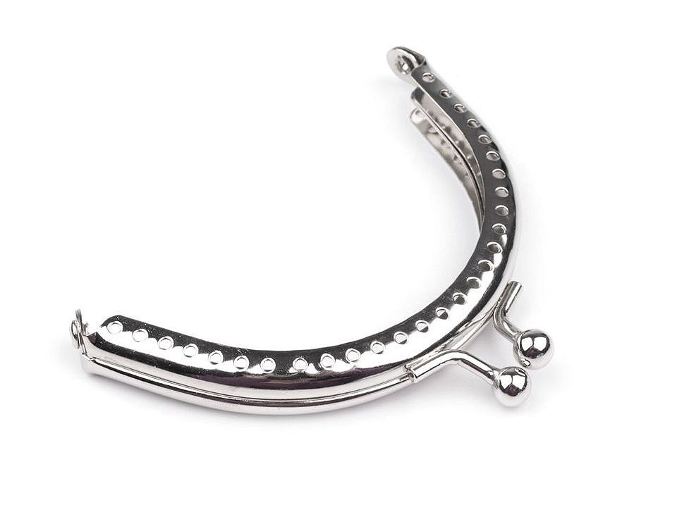 Kovový rámeček se zapínáním na výrobu peněženky. Rámeček je určený pro našití, kdy se látka dovnitř vloží a ručně přešije přes dírky, jejichž rozpětí je 4 mm. Dírky jsou jen na vnější straně rámečku. Tento typ zapínání využijete určitě na jakýkoliv typ peněženky. Vyrobeno z magnetizujícího kovu.