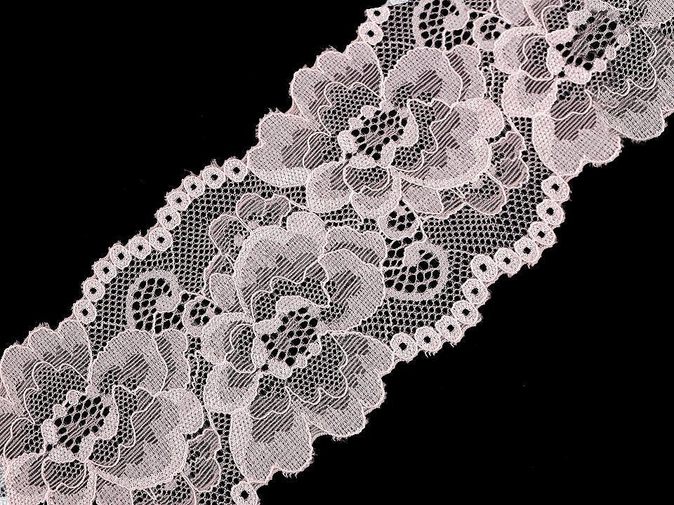 Elastická krajka má romantický květinový design.