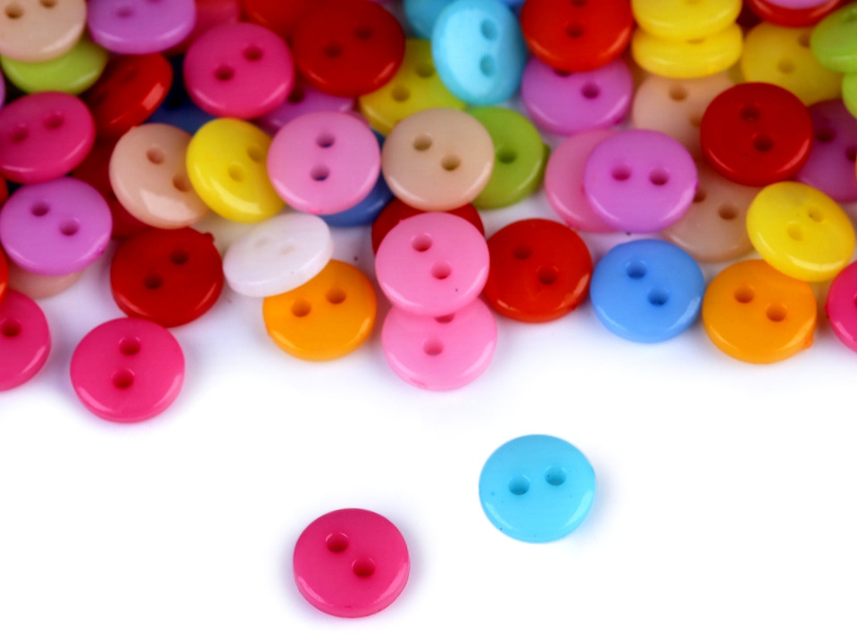 Plastové knoflíky mají pestré a veselé barvy.