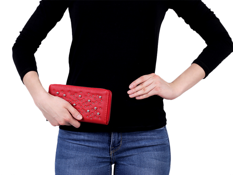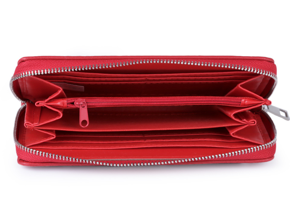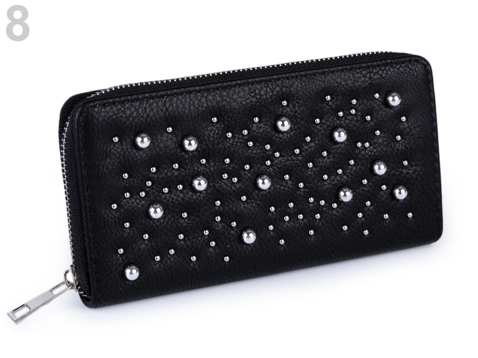 legantní dámská peněženka s kovovými perlami je velmi prostorná. Má kvalitní zpracování z eko kůže, je příjemná na dotek. Zapíná se na kovový zip. Uvnitř má členění pro vkládání dokladů.