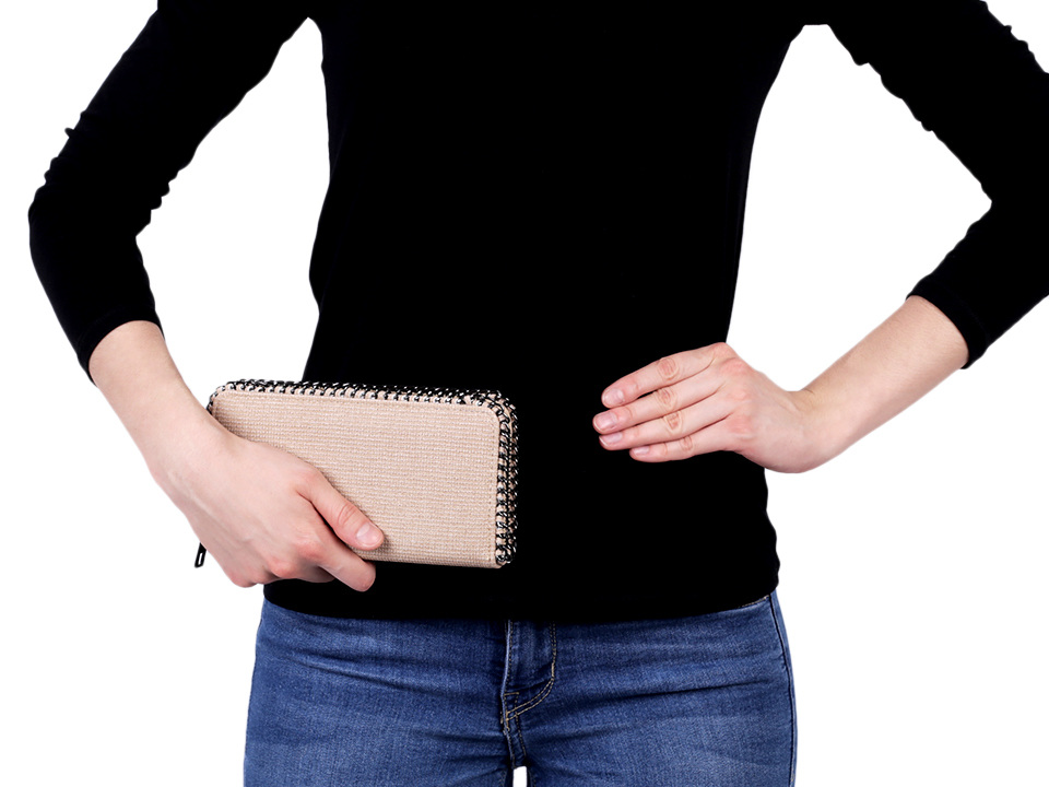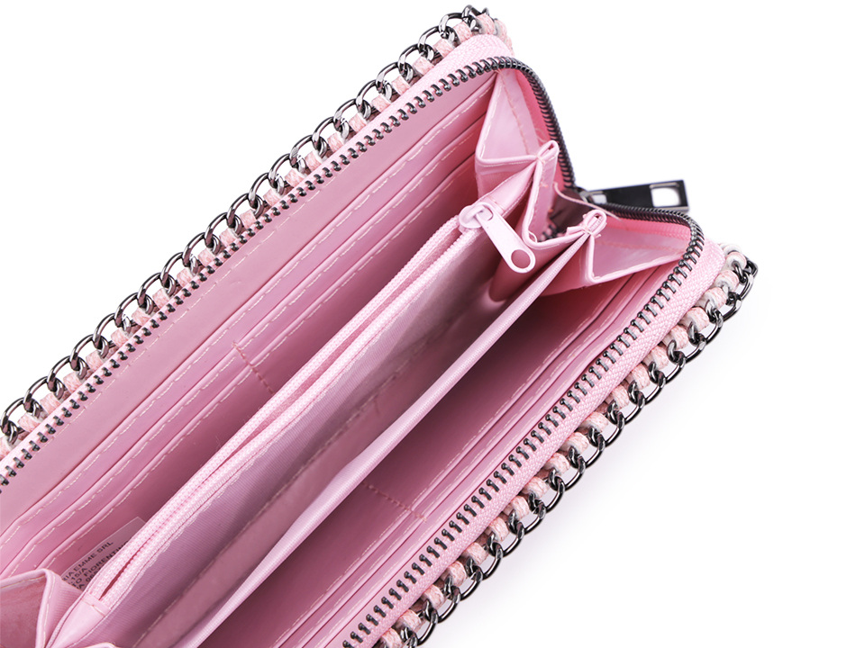 Dámskou peněženku lemuje kovový řetízek. Je velmi prostorná a kvalitně zpracovaná.