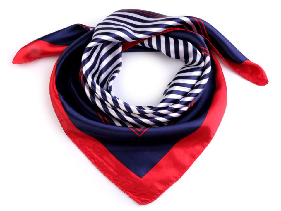 Módní šátky s pruhem jsou v oblibě. Dnešní trendy si nelámou hlavu s kombinacemi, proto směle do toho, ovocný nebo květinový motiv na kabelce či šperku slaďte s proužkováním vašeho nového šátku. Námořnický vzhled šátku podtrhne jednoduchost a svěžest jednobarevného kostýmku. Zkuste odvážné kombinace. Příjemný materiál vás bude hýčkat každý den.