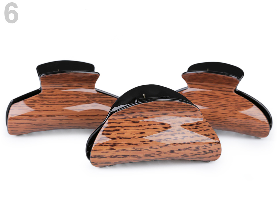 Skřipec do vlasů je skvělým pomocníkem při úpravě účesu. Je vyrobený z kvalitního plastu, se zajímavým dekorem dřeva.