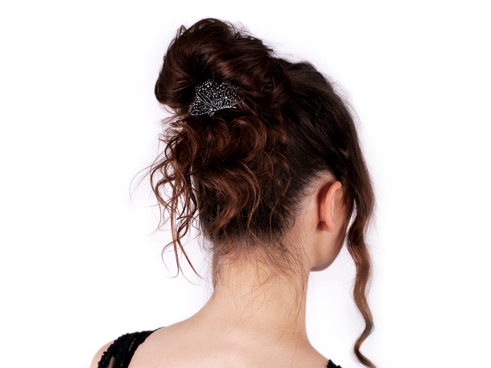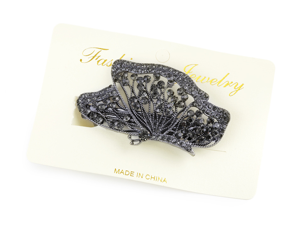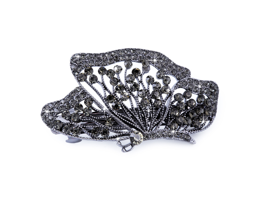 Francouzská spona s motýlem je celá vykládaná broušenými kamínky. Luxusně ozdobí slavnostní účes.
