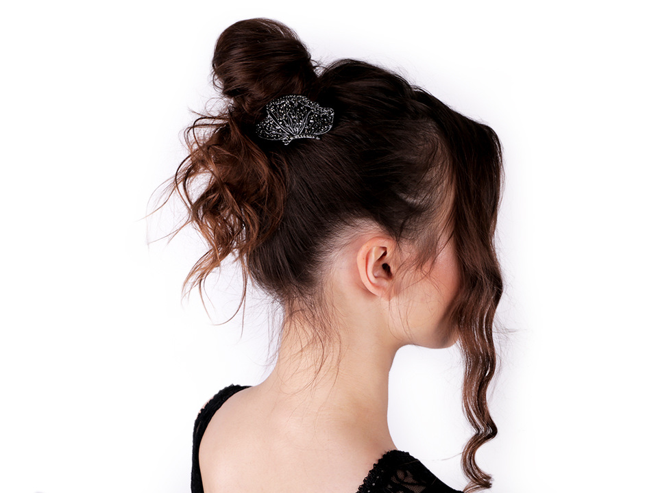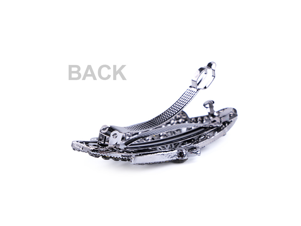 Spona má kvalitní celokovové provedení. Její zacvakávací mechanismus je pevný. Díky třpytivým kamínkům, upoutá pozornost již z dálky. Délka části pro vlasy je 3,5 cm.