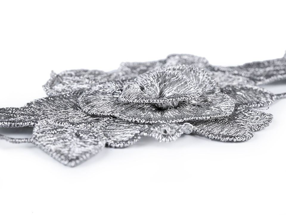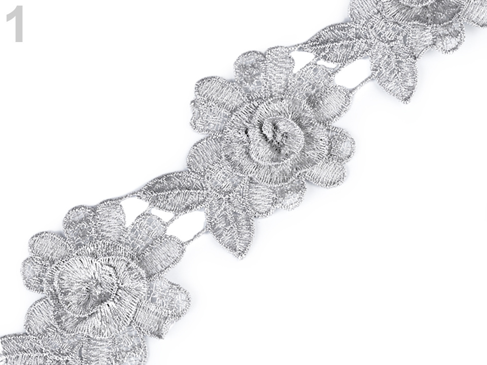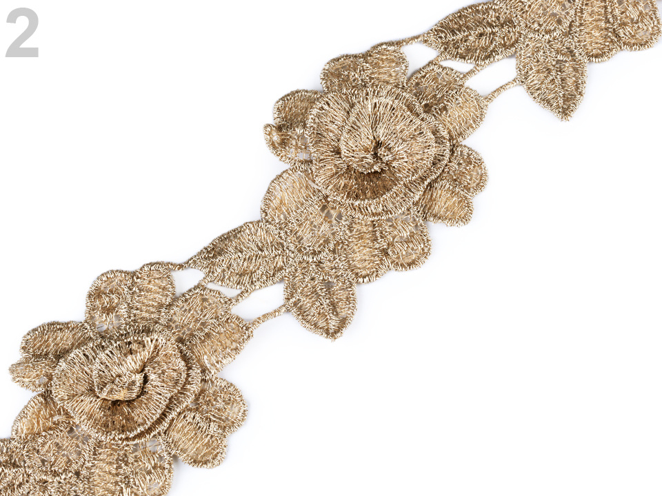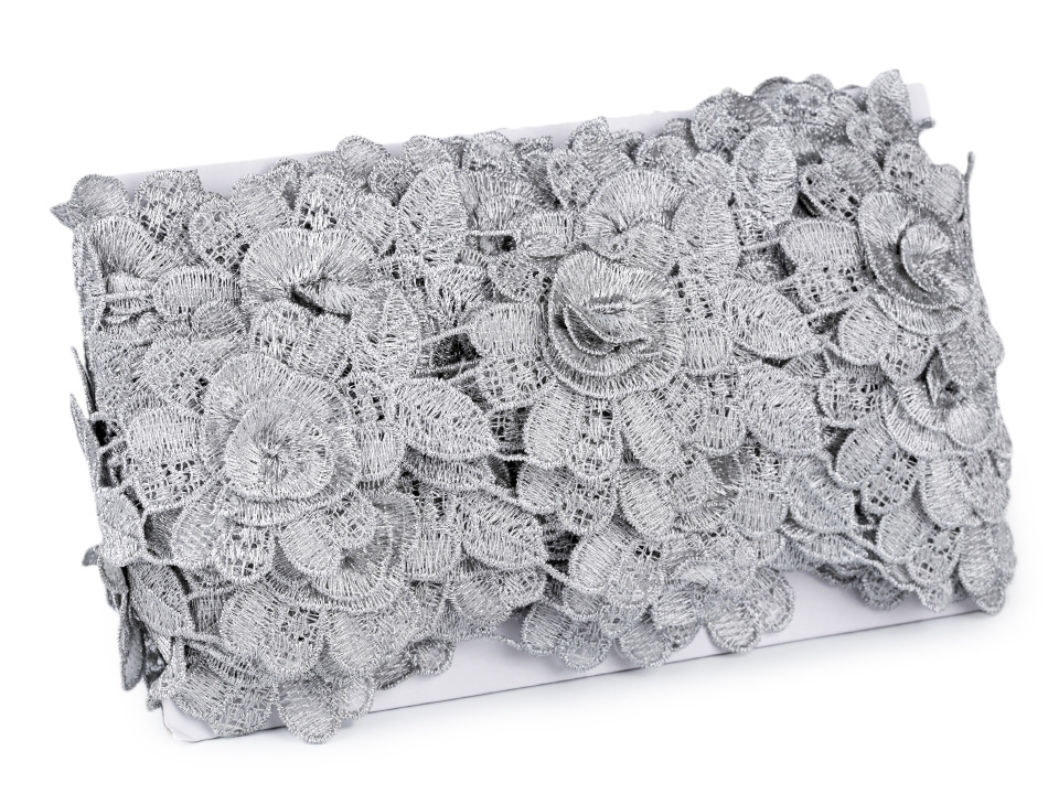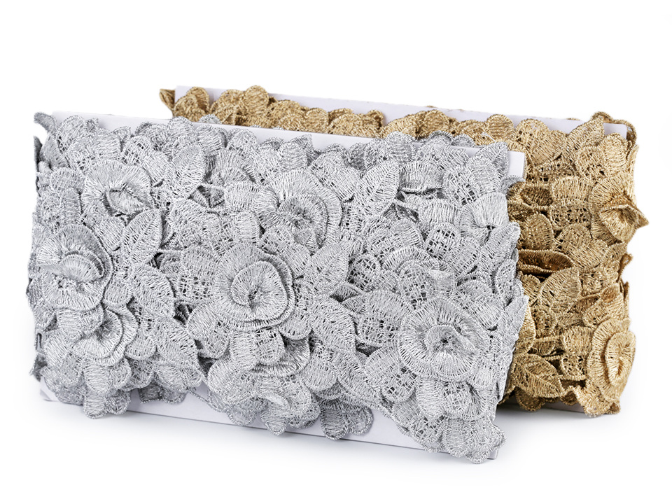 Prýmek s lurexem zaujme svým originálním provedením, květy na něm jsou ve 3D efektu. Jednotlivé květy můžete i rozstříhat a použít samostatně.