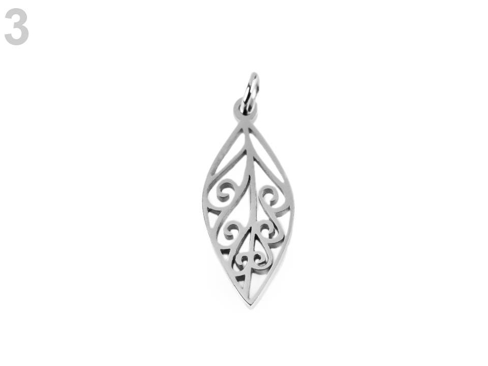 Přívěsek č.3 - list - má rozměry 6 x 14 mm.