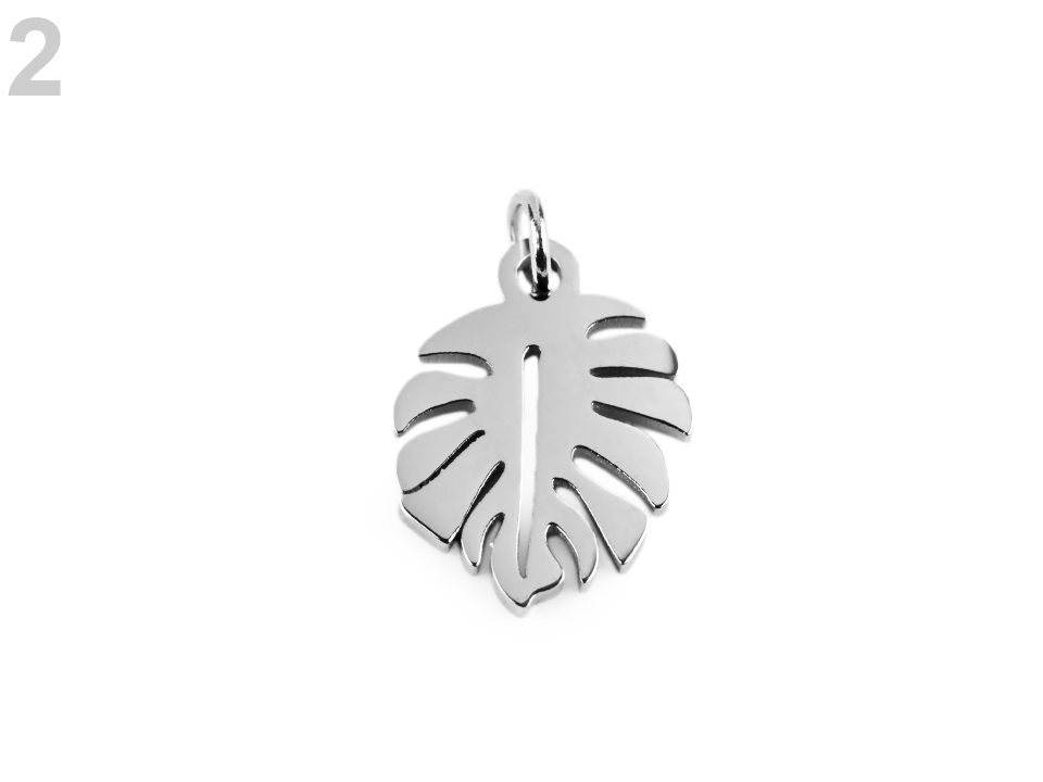 Přívěsek č.2 - list Monstera - má rozměry 8 x 10 mm.