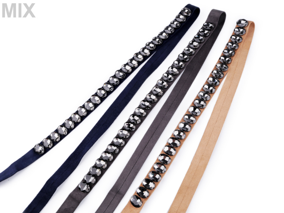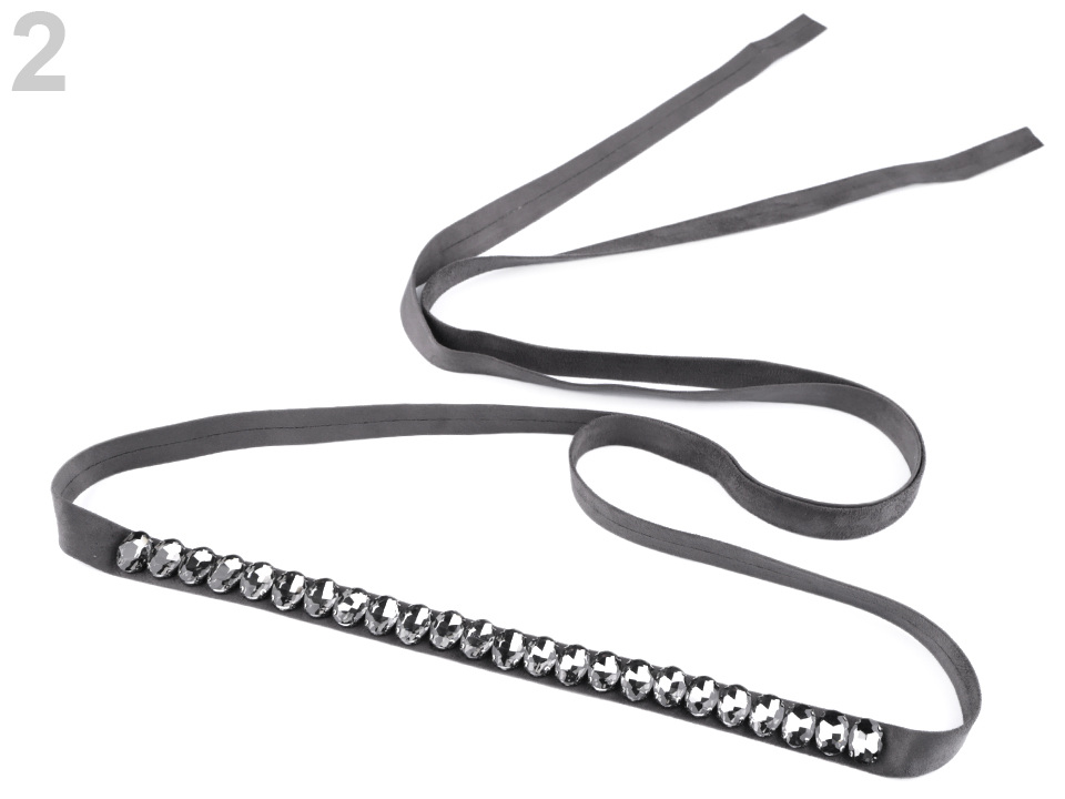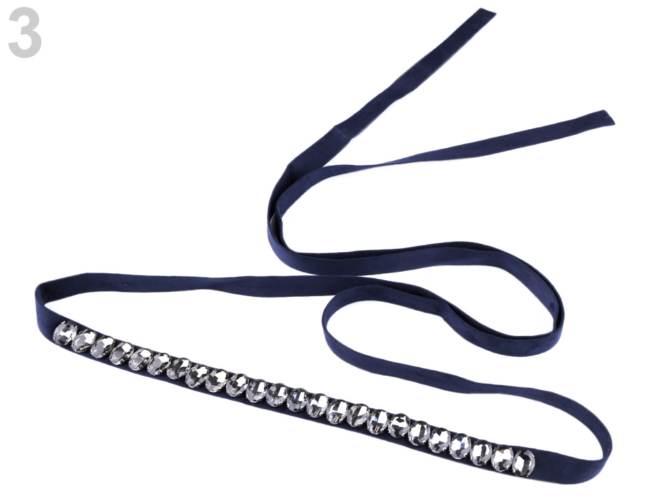 Přední ozdobená část s kameny je dlouhá 31 cm. Konce jsou dostatečně dlouhé na zavázání na mašli.
