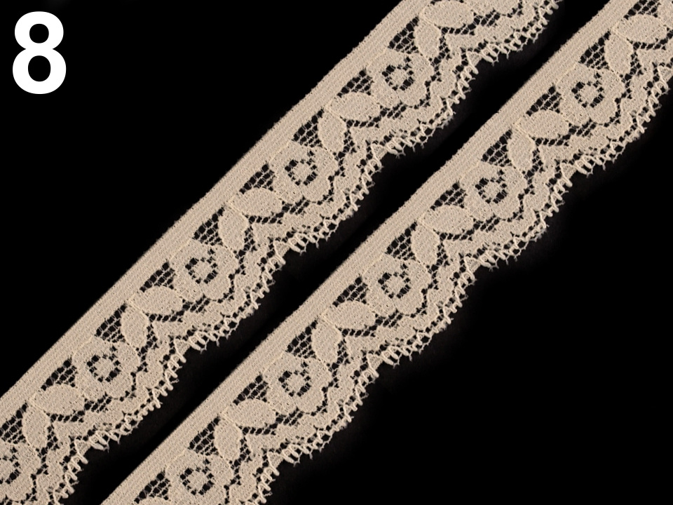 Krajka o šíři 20 mm je vyrobená z kvalitního polyamidu a díky elastanu je pružná. Nejčastěji se používá na ozdobení spodního prádla. Lze ji ale použít i na dámská trika, sukně nebo ke zdobení např. svatebních či narozeninových přání. Krajku nabízíme v návinu 25 m.