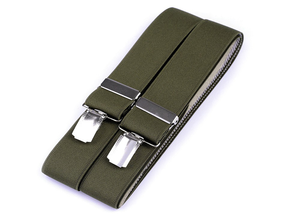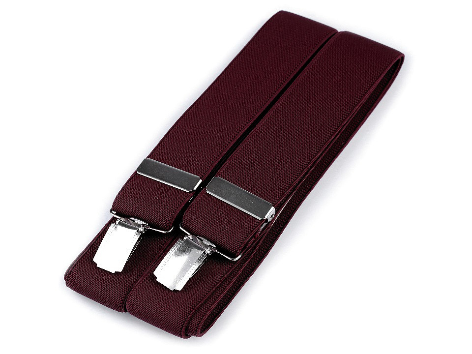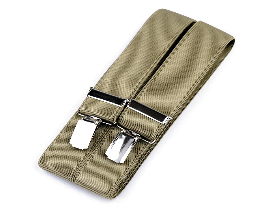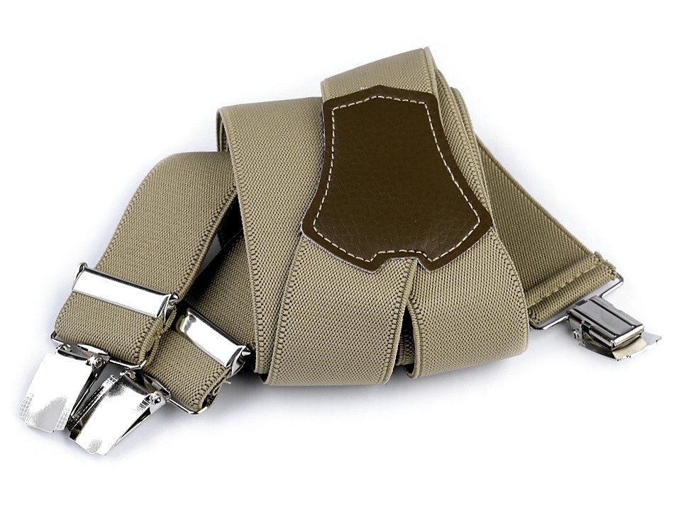 Jednobarevné šle jsou kvalitní české výroby. Elastický materiál umožňuje pohodlné nošení. Zadní vsadka z eko kůže jim dodává stylový vzhled. Ke kalhotám se upevňují na tři žabky - dvě vpředu a jednu vzadu.