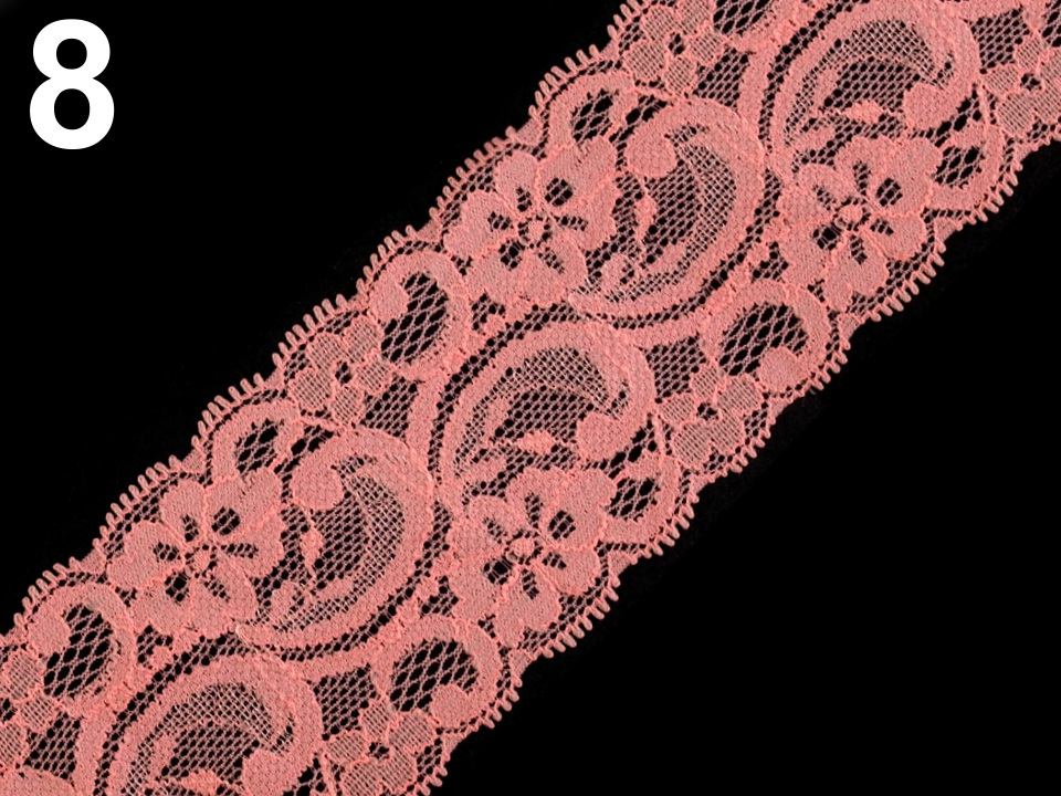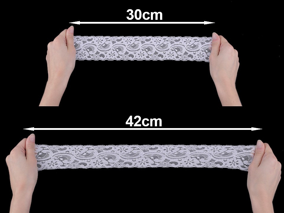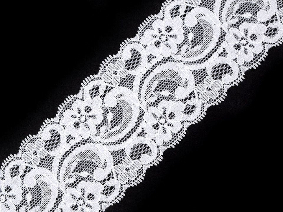 Elastická krajka o šíři 55 mm je vyrobená z kvalitního polyamidu. Díky elastanu je krajka poměrně pružná. Nejčastěji se používá na lemování spodního prádla, lze ji ale použít i na dámská trika, sukně, ke zdobení přání atd.