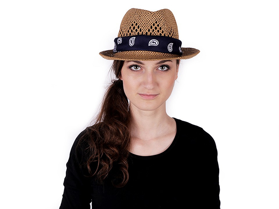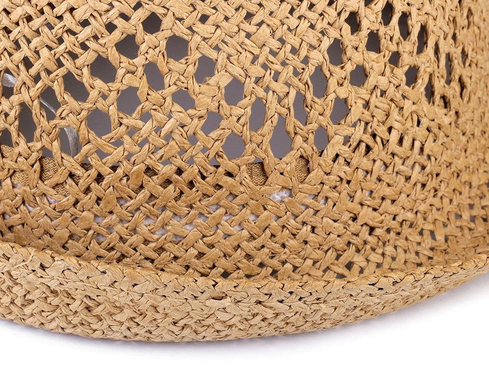 Ažurový klobouk využijí v teplých letních dnech dámy i pánové. Obvod klobouku si můžete stáhnout pomocí rypsové stuhy. Klobouk můžete dozdobit šátkem, různými odznaky, rypsovou stuhou, řemínky apod.