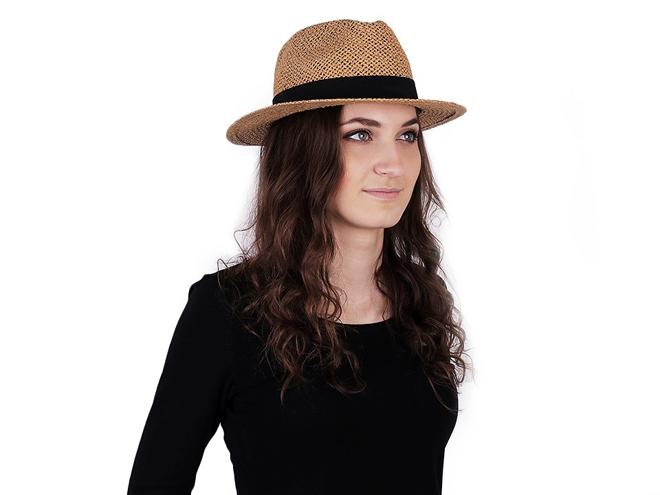 Letní klobouk v teplých dnech využijí dámy i pánové. Zdobí ho jednobarevná stuha.
