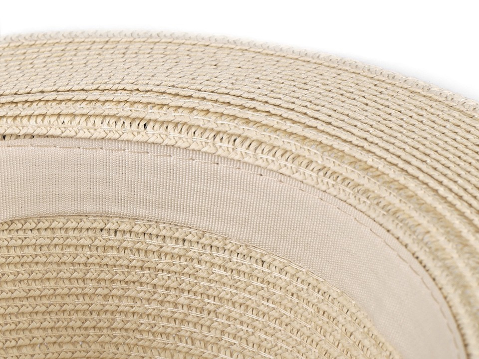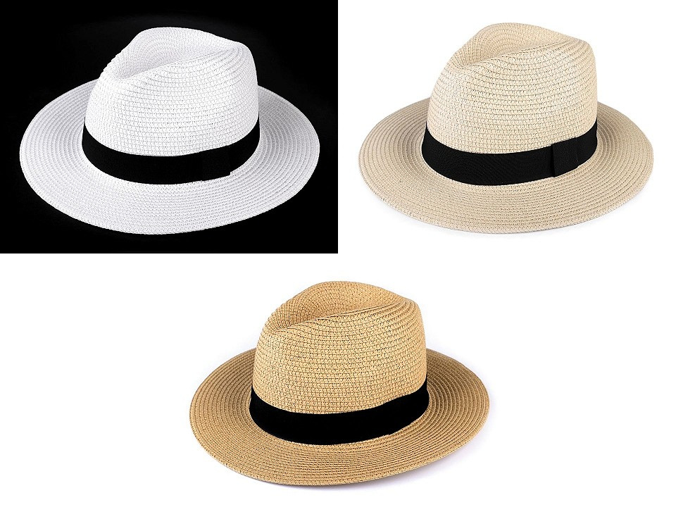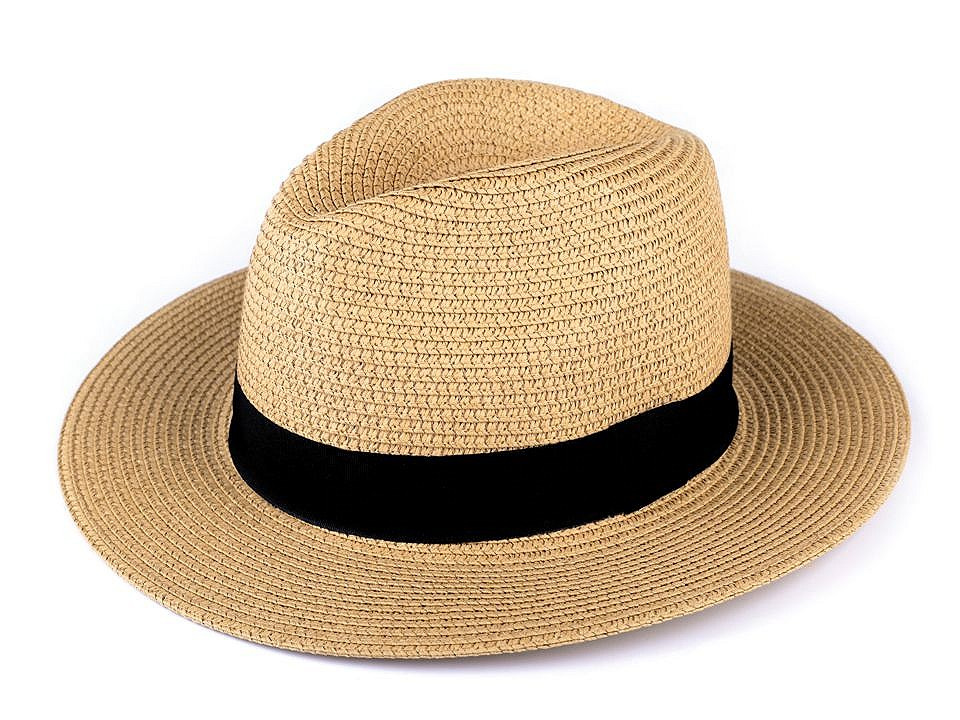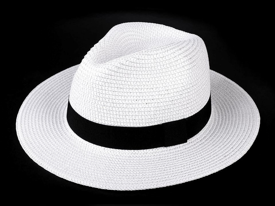 Letní klobouk je vhodný pro dámy i pro pány. Zdobí ho jednobarevná stuha.