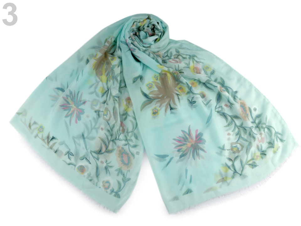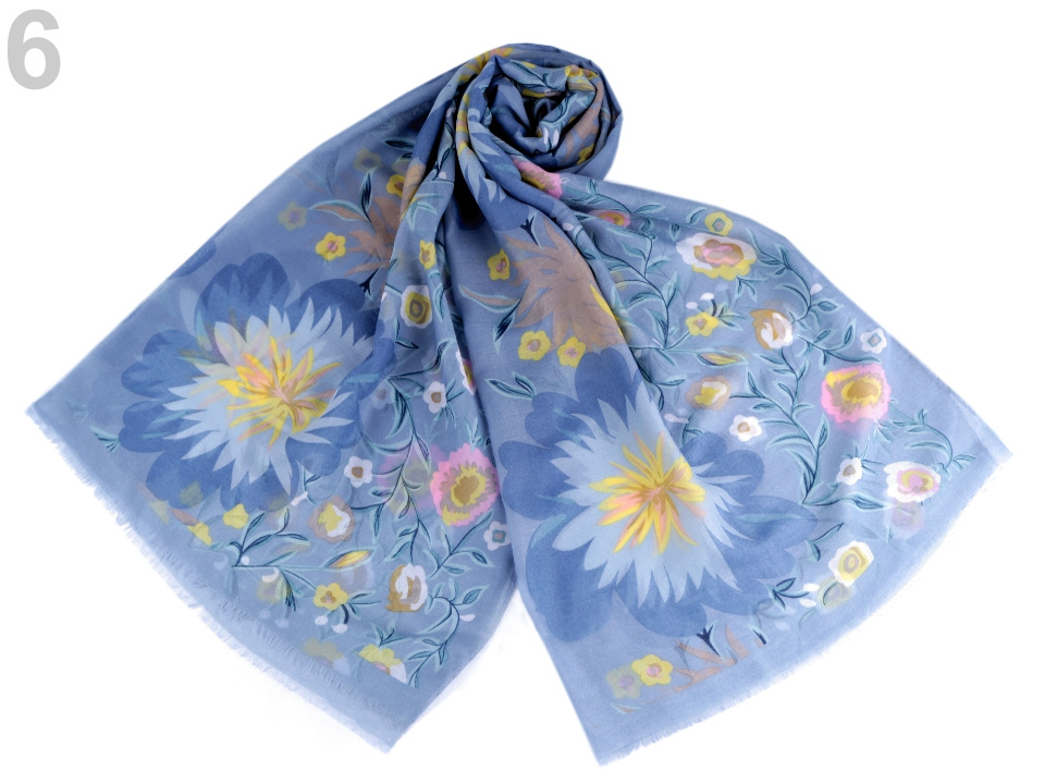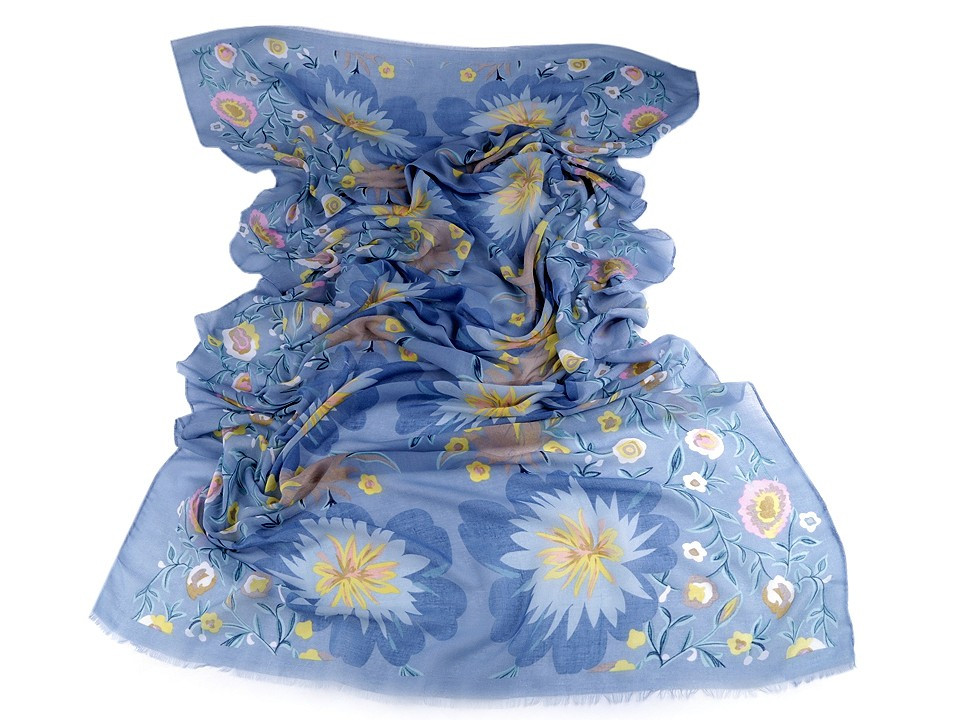 Šála s potiskem květů je lehounká, vyrobená z příjemného materiálu. V létě vám šála poslouží jako pléd kolem ramen, v zimě si ji můžete pohodlně omotat kolem krku.