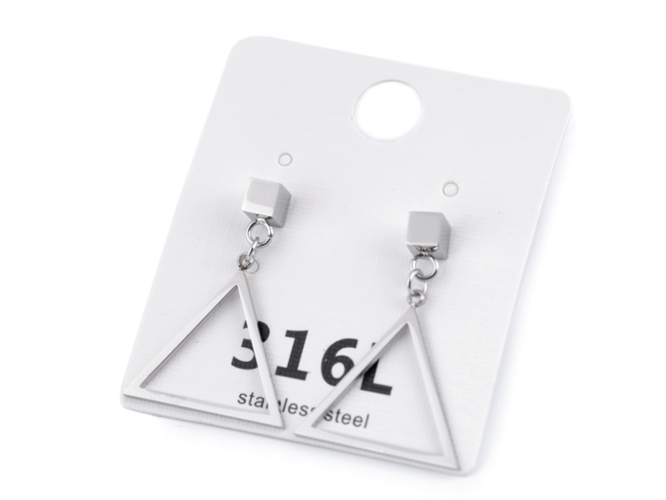 Náušnice trojúhelníky z kvalitní nerezové oceli ocení ženy, které mají rády šperky čistých linií. Jejich minimalistický design dotáhne každý business outfit k dokonalosti. Povrch náušnic má vysoký zrcadlový lesk.