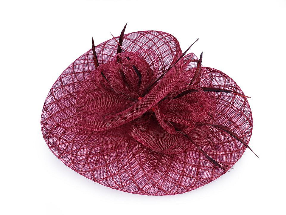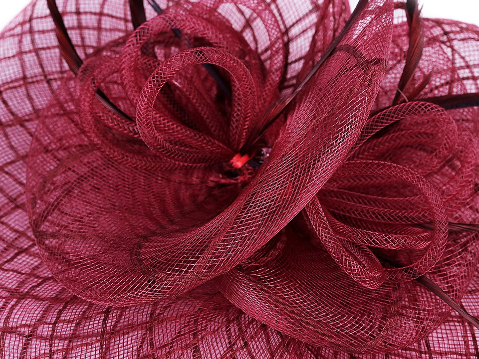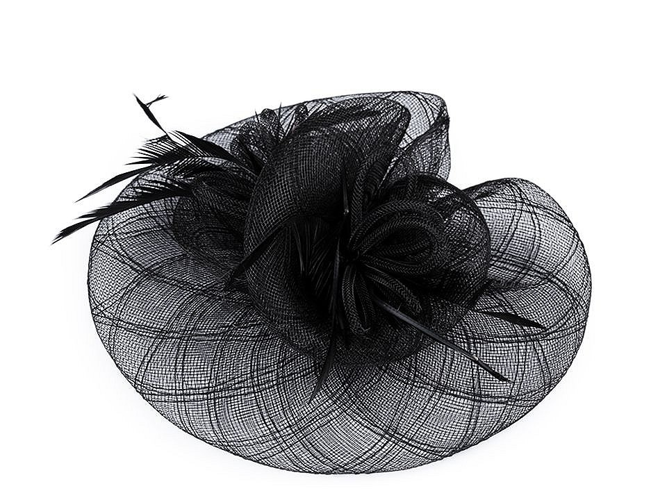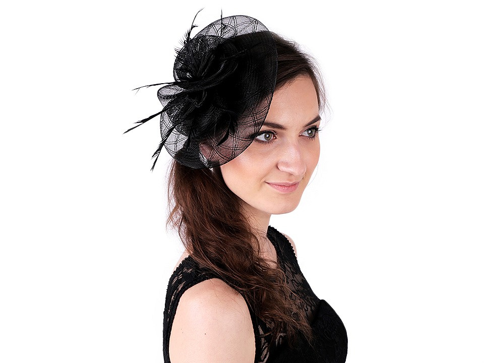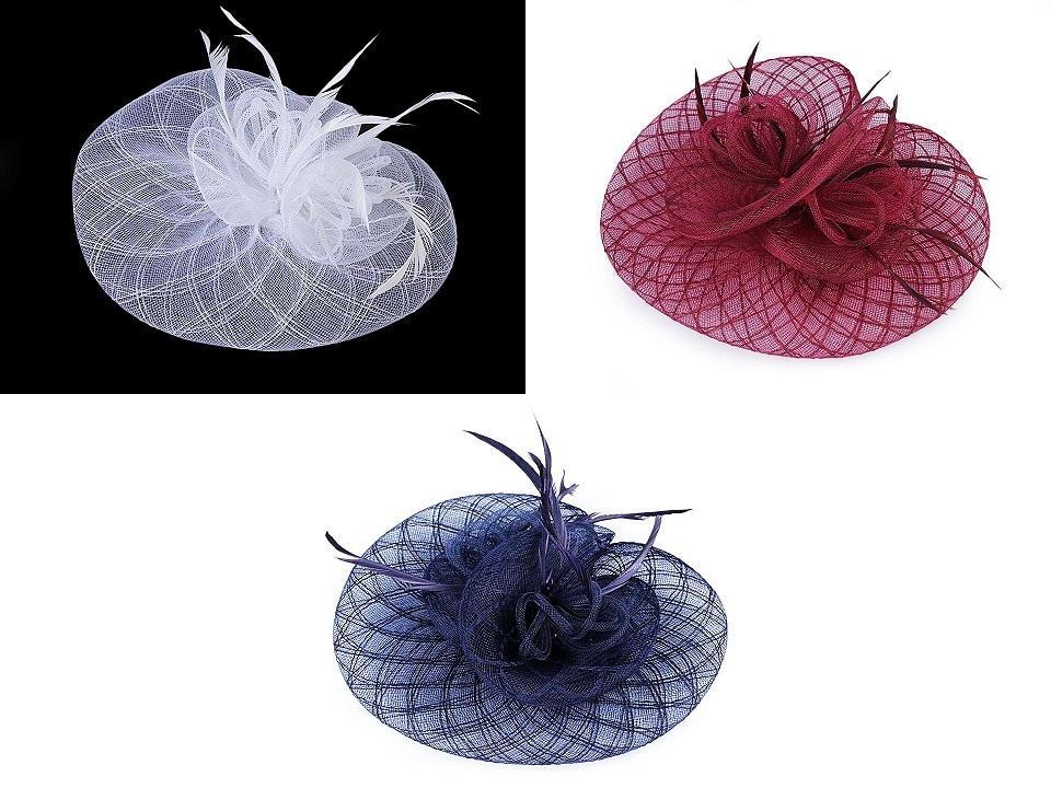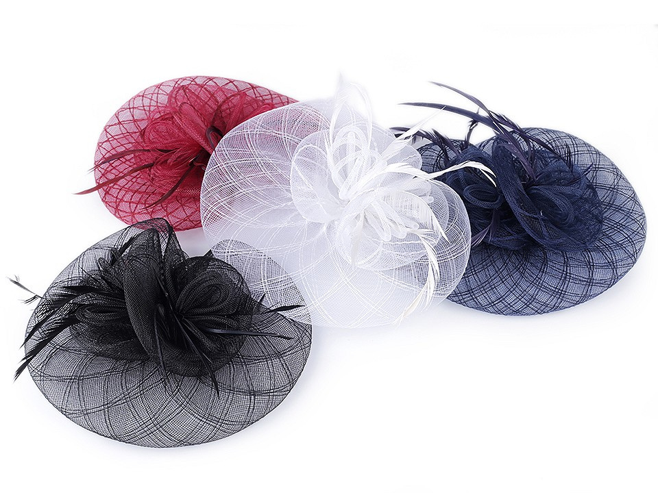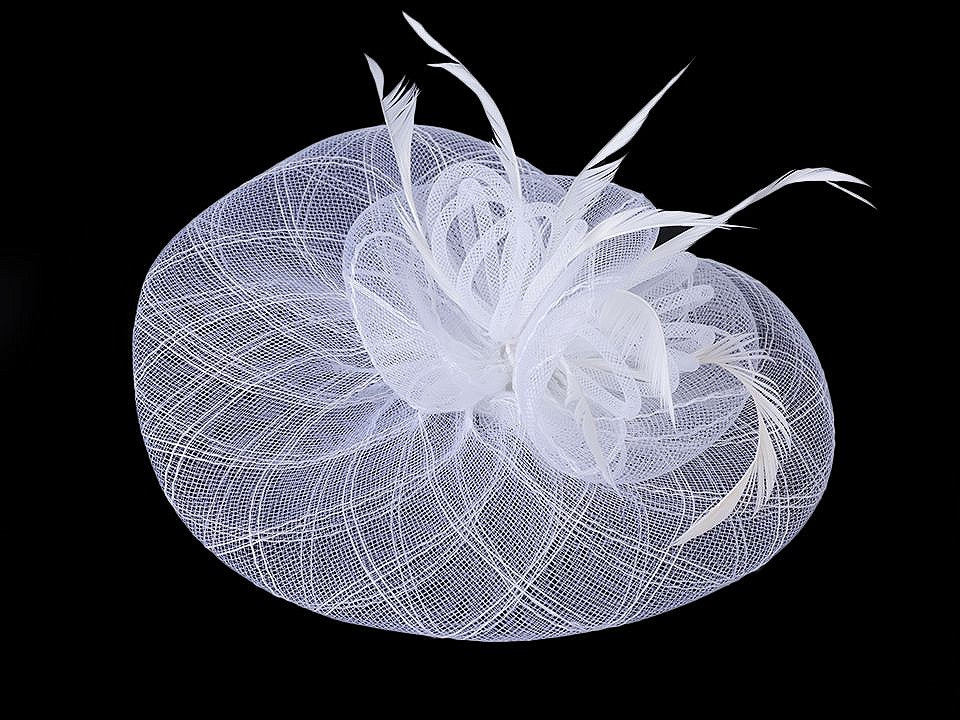 Elegantní fascinátor využijete pro slavnostní příležitosti jako jsou svatby, plesy, letní procházky, festivaly, party, návštěvy divadla apod. Je vyrobený z modistické síťky, která je vytvarovaná do květu. Střed má ozdobený pírky.