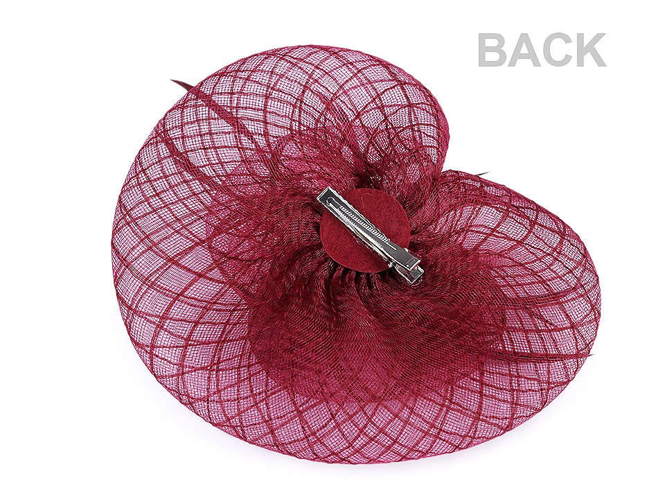 Fascinátor je pevně přichycený ke klipsu se zoubky. Dá se přichytit jak do vlasů, tak např. na klopu, tašku apod.