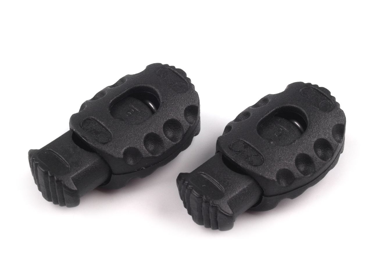 Brzda se používá jako součást oděvů a bund pro efektní ukončení šňůrek. Uvnitř brzdičky je strunka která zajišťuje pevnější uchycení. Rozměr brzdy 30 x 17 mm, průvlekové dírky 6 x 8 mm.