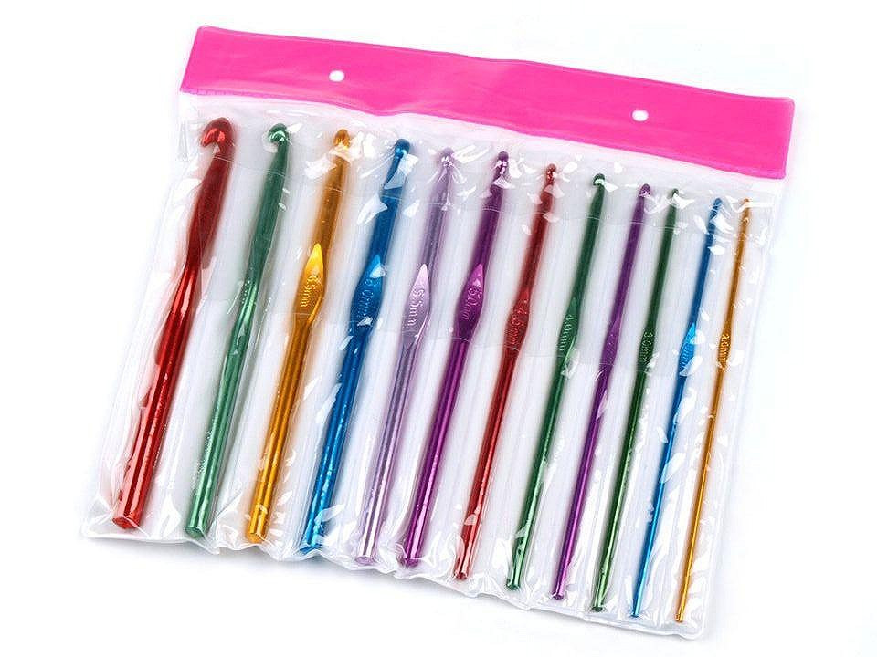 V jedné sadě naleznete 12 hliníkových háčků následujících velikostí: 2; 2,5; 3; 3,5; 4; 4,5; 5; 5,5; 6; 6,5; 7 a 8 mm. Háčky mají různé barvy. Tento sortiment jistě ocení každá žena, která ráda háčkuje.