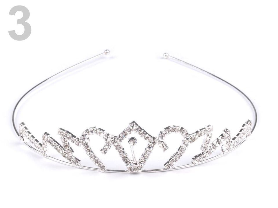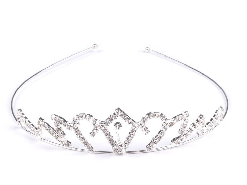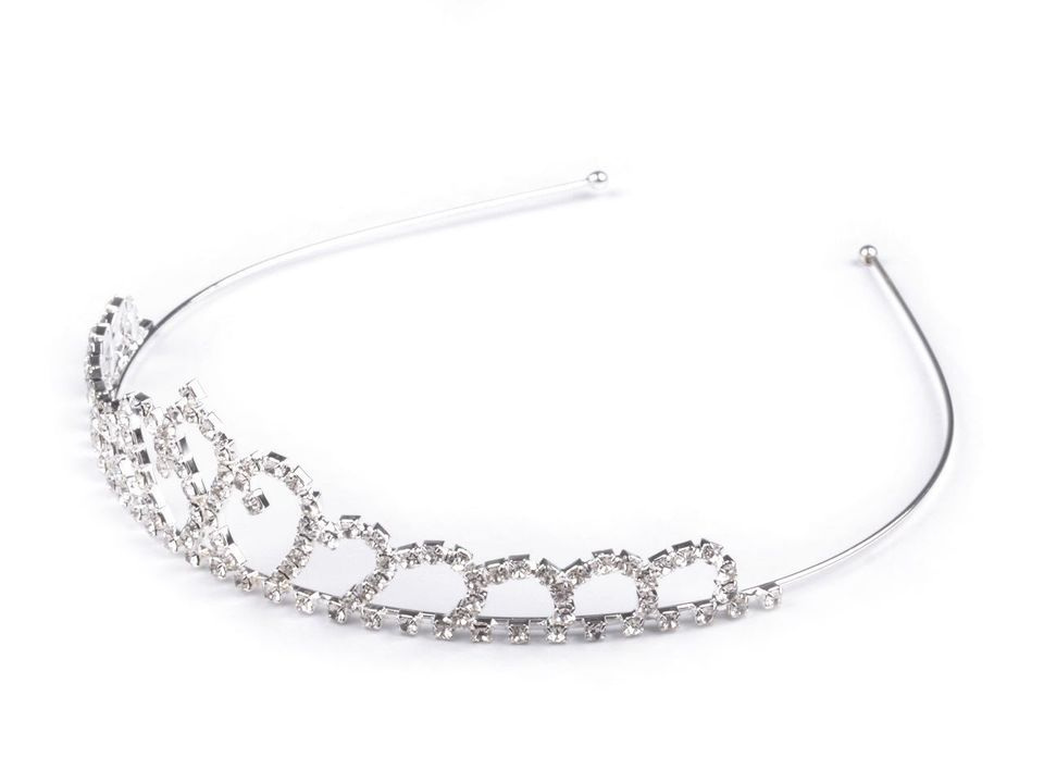Exklusivní čelenka je vykládaná štrasovými kameny. Právě tato čelenka zdobí internetovou Miss sympatie pro letošní rok. Obvod čelenky 39cm. Výška čelenky: 1. 30mm, 2. 30mm, 3. 25mm, 4. 25mm. Čelenka je vhodná do bohatých a vyčesaných účesů, k upevnění závoje či drdolu.