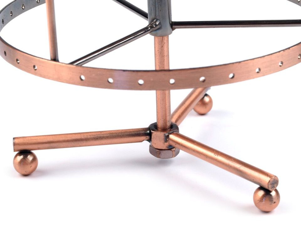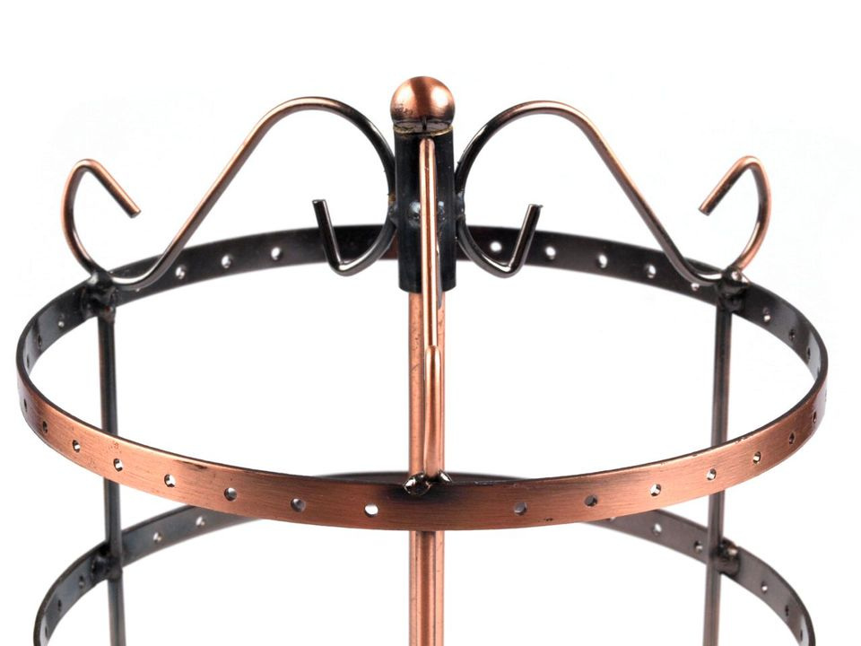 Stylový otočný stojan vám usnadní přemýšlení nad tím, kam zavěsit náušnice, aby byly přehledně uspořádány. Po celém obvodu všech čtyřech obručí jsou vyvrtány dírky, takže náušnic zavěsíte opravdu mnoho. Stojan má cca 144 dírek, tzn. že na každé obruči se nachází 36 dírek pro 18 párů náušnic.Obruče mají průměr 15 cm. Celková výška stojanu je 30 cm.