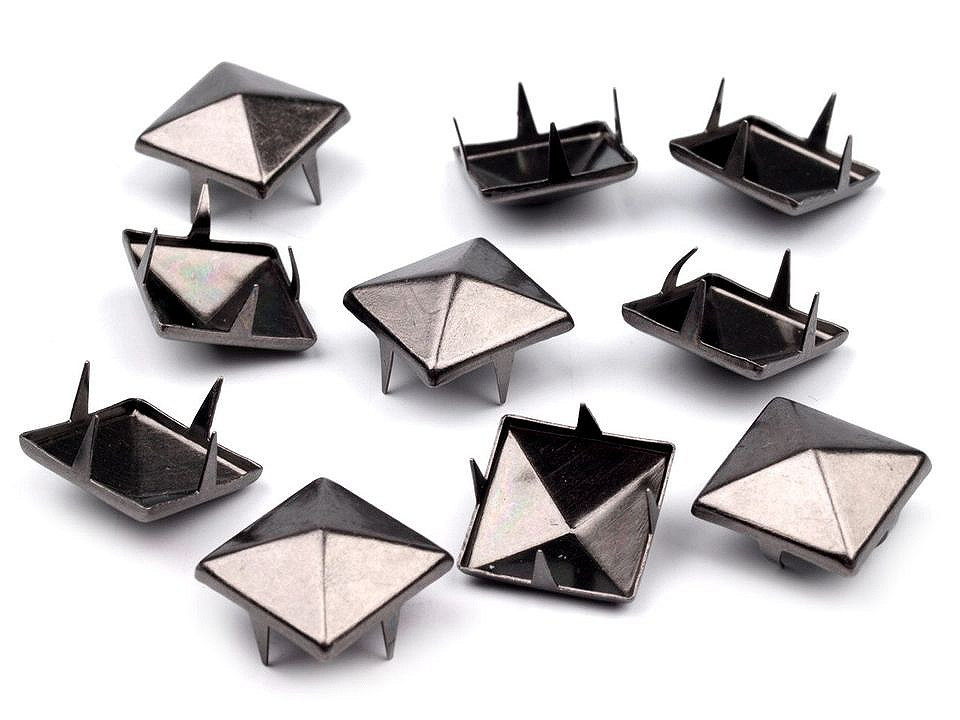 Kovové cvočky ve tvaru pyramidy jsou moderním doplňkem oblečení. Jistě jste je viděli na rockerském oblečení. Dnes se s nimi můžete také setkat např. na kabelkách, obuvi, šatech, peněženkách, atd. Cvočky jsou opatřeny nožičkami, které jdou ručně ohnout a jednoduše se tak připevní na látku. Oděv či módní doplněk s těmito ozdobami lze prát.