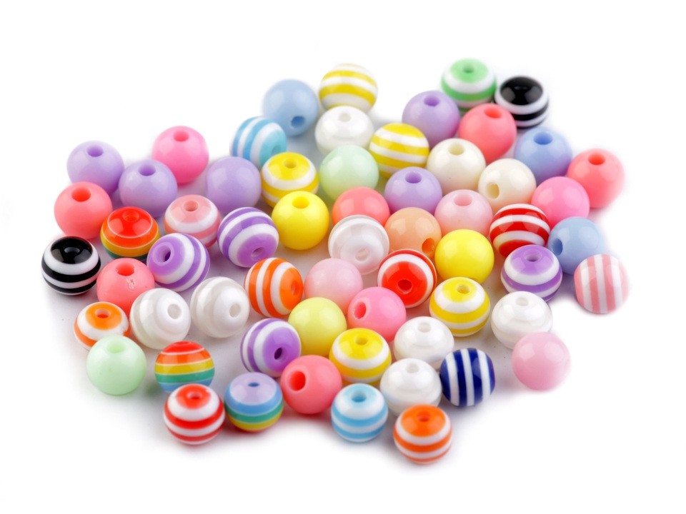 V mixu se vyskytují proužkované i jednobarevné korálky.
