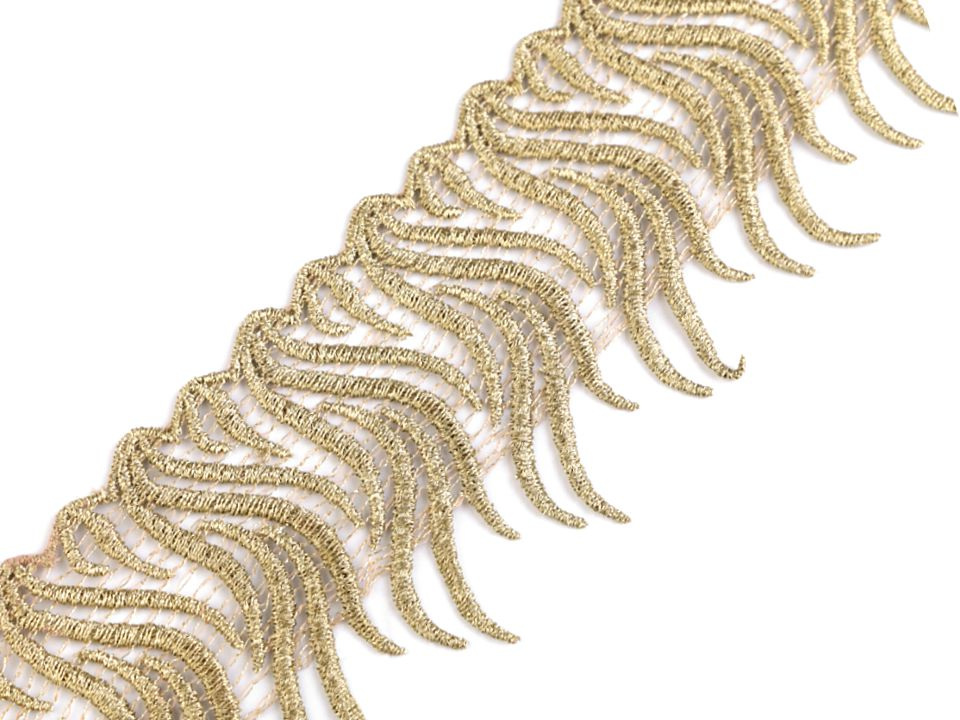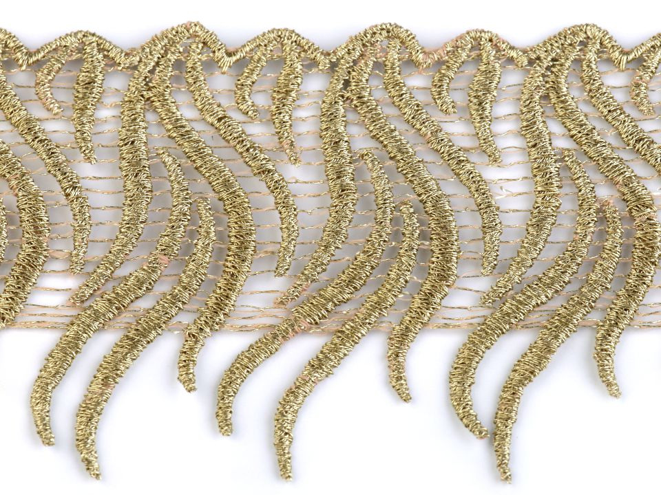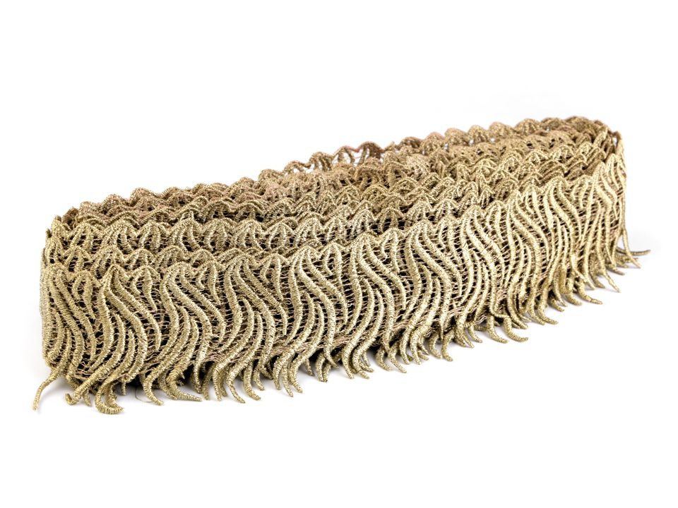 Použití: Prýmek můžete našít na oděvy i doplňky. Vynikne na společenských šatech, sakách, kabátech, kloboucích a taškách. Je vhodný také na zdobení divadelních či tanečních kostýmů.