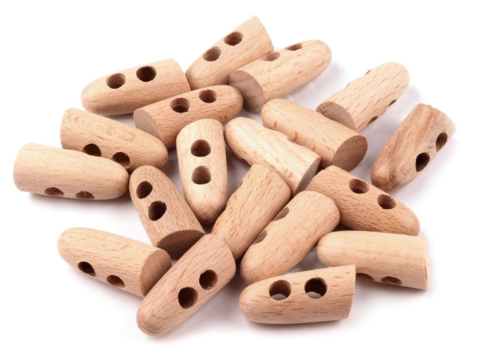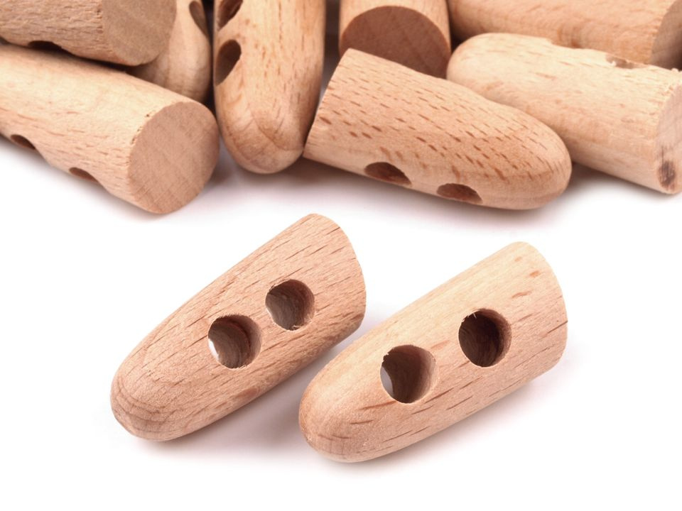Dřevěný knoflík přírodní barvy je vhodným doplňkem zimních kabátů či svetrů. Svým tvarem vás určitě zaujme. Je podélný, oválný, na jednu stranu se postupně zužuje. Jedná se o tvrdé dřevo a kvalitní zpracování bez třísek. Rozměry knoflíku jsou 9 mm (na širším okraji 14 mm) x 30 mm.