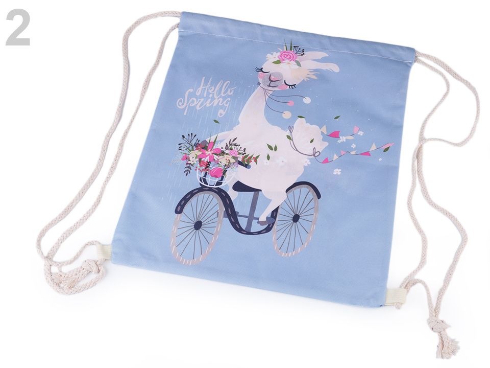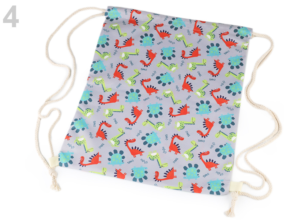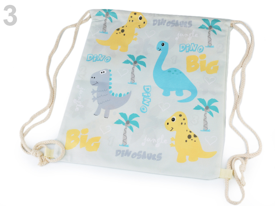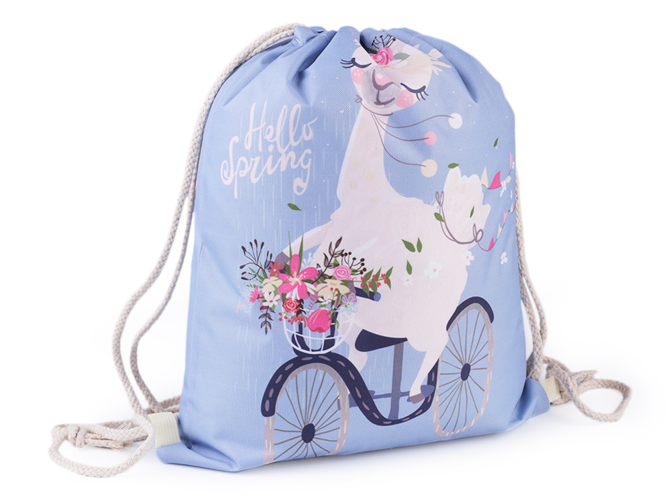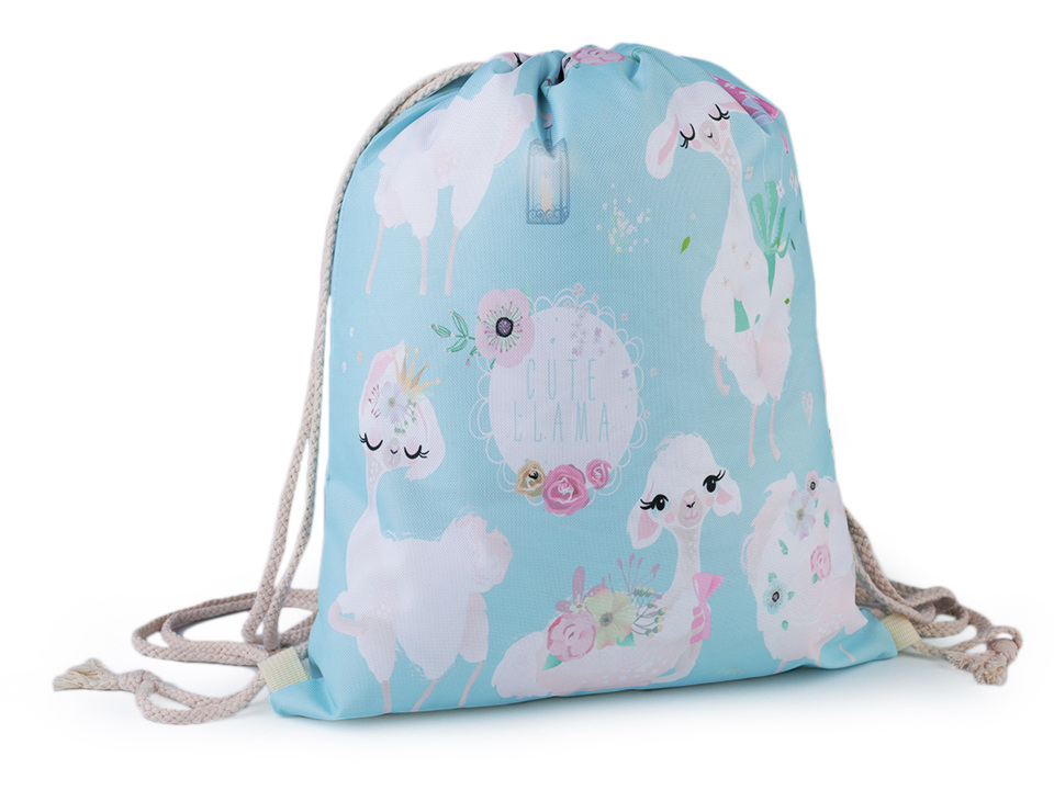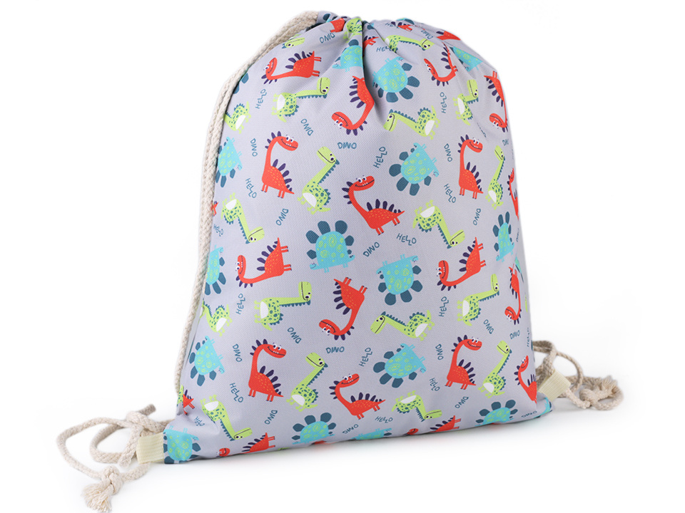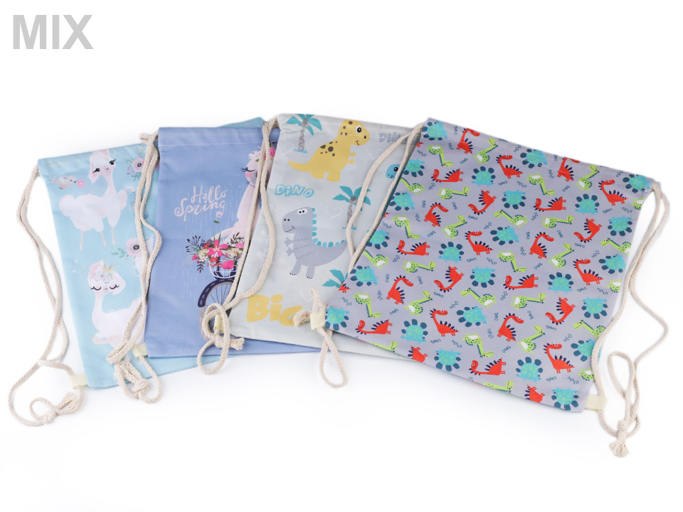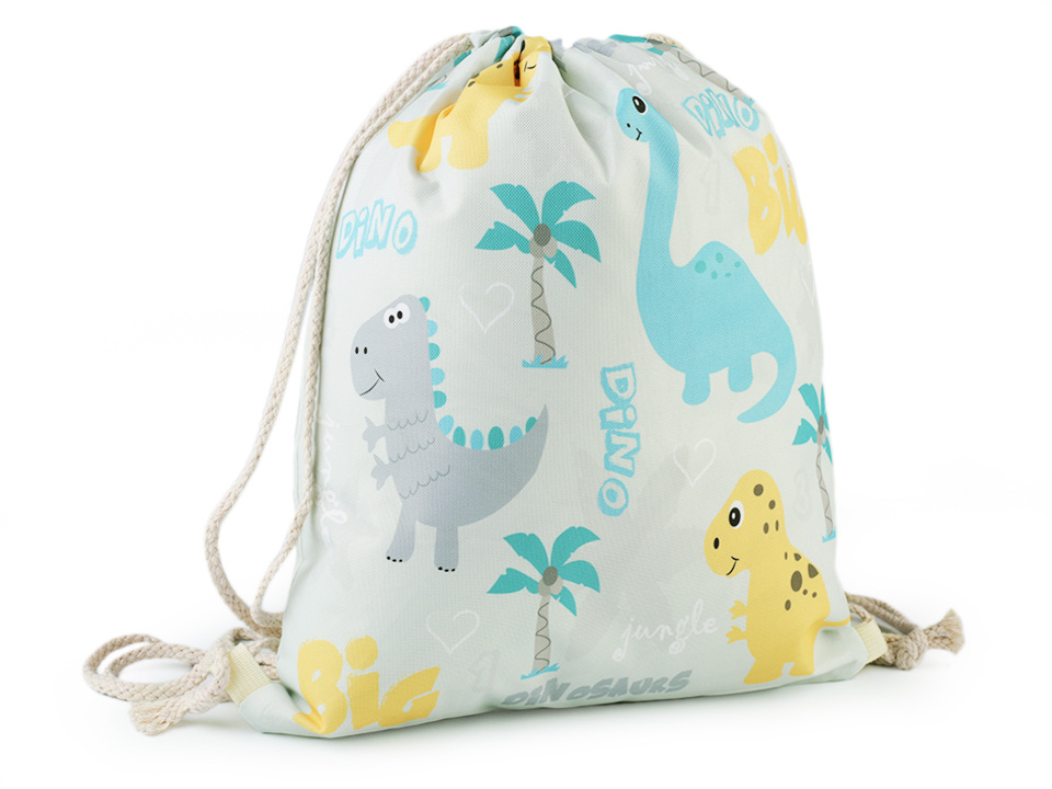 Vak na záda s roztomilými potisky slouží k uschování přezůvek, oblečení, apod. Stahuje se jednoduše pomocí šňůrek. Potisk na vaku je oboustranný.