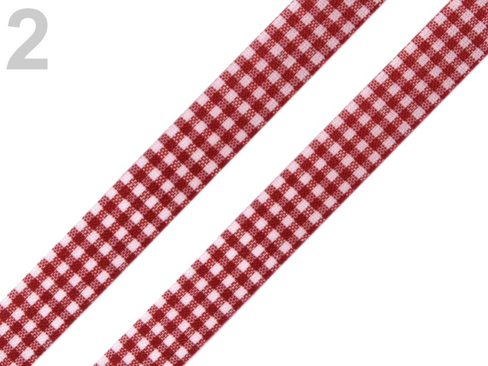Károvaná stuha řezaná šíře 12 mm - 2 červená tmavá