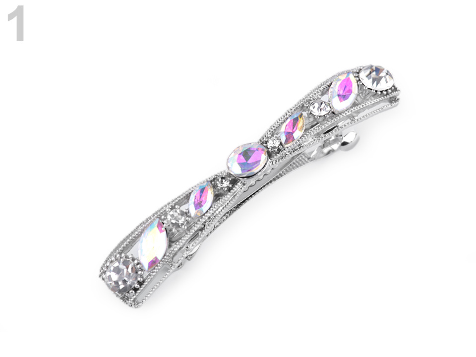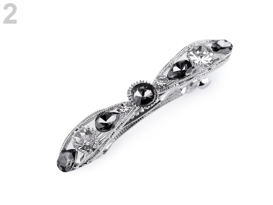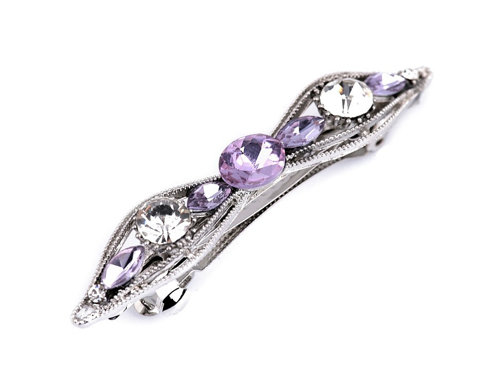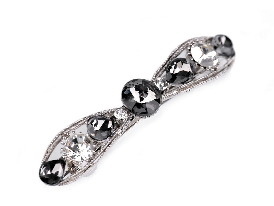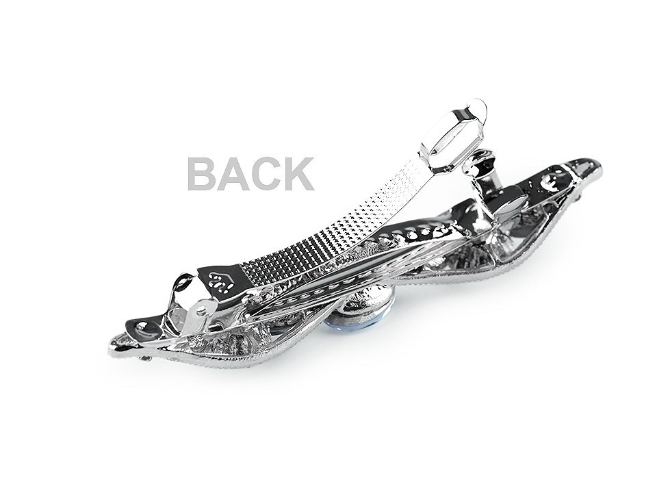Francouzská štrasová spona ve tvaru mašličky skvěle ozdobí slavnostní účes. Má velmi kvalitní celokovové provedení. Zacvakávací mechanismus je pevný. Spona je zdobená skleněnými broušenými kameny, které se oslnivě třpytí, upoutají pozornost už z dálky. Délka části pro vlasy je 4,5 cm.